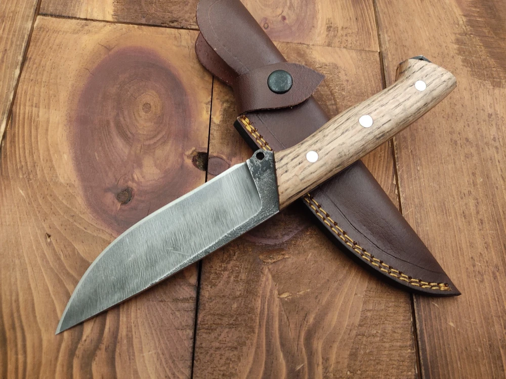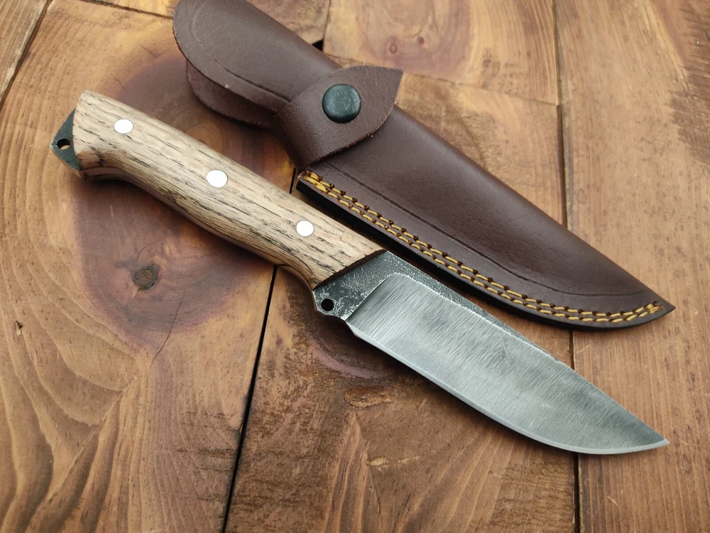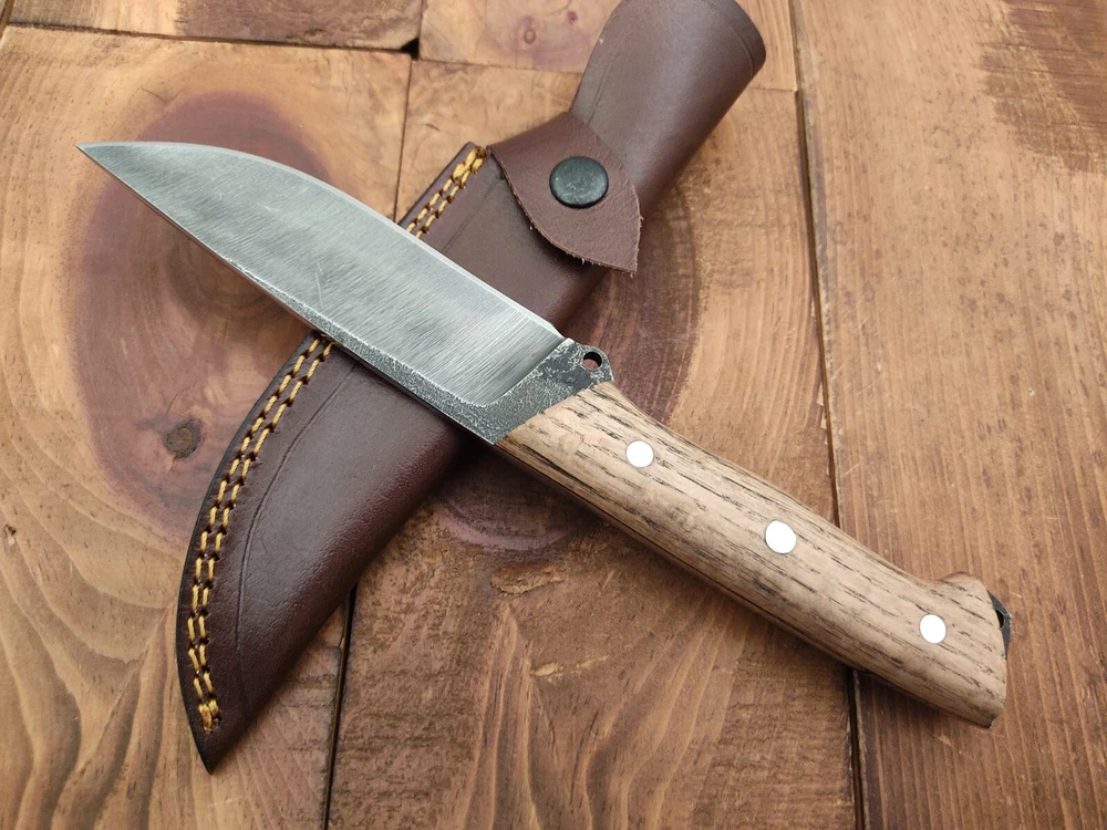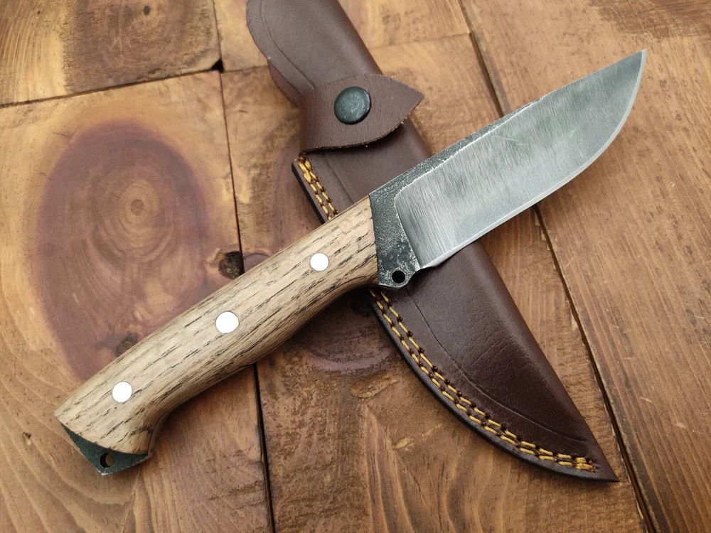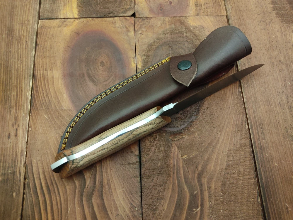 ITEM # HM-150 Fabulous Unique THUNDER STORKE Custom MADE KNIFE Custom Handmade Forged 1095 High Carbon Steel Camping Survival Outdoor Vintage Hunting Fixed Blade Knife High Carbon Steel holds an edge very well and is optimum for hunting and skinning use as well as tactical and military tasks. The steel is very corrosive and will tarnish and turn the blade black when blood and acidic liquids or chemicals get onto the blade. The blade will still work fine, but will lose the satin color when it was new. Oak Wood Handle 1095 High Carbon Steel Acid Washed Blade RAZOR SHARP Gorgeous Handle & Blade 10.2" Long | Blade is 5.1" Long | Handle is 5.1" 4 mm Thick Blade | Beautiful Worked Blade & Handle WORK OF ART This prestigious unique HUNTING knife was designed and custom made by THUNDERSTORKE . Blade was given excellent heat treatment and Rockwell hardness of the blade 58 to 60 . PAYMENT: As Per Ebay Requirement DISPATCH TIME: 2 to 3 DAYS AFTER RECEIVING YOUR PAYMENT COURIER / SHIPPING: When we print the postage label there is a number that is on the label. This number is called a "Delivery Confirmation Number". The post office is not like UPS or FEDX where they scan the mail at the receipt point and then track it to your door. What the post office does is scan the item when it is delivered (if they choose to) and then you will see that it was delivered. Sometimes they do scan it when you drop it off, but this is rare. If they did scan it at a sorting facility, you see it moving across the USA. But this is very rare. - eBay confuses the buyer with the "tracking number" next to the post offices "delivery confirmation number" when in reality there is not a tracking number. You can ask this at the post office and they will concur. We print labels off the internet using eBay's USPS shipping program and then we drop the packages off at the post office, similar if you were mailing a stamped letter. The post office is supposed to scan it "received" and they do this about 50% of the time. But sometimes they do not scan them. Do not worry, we did mail the item and it is on it's way to you. COMBINE SHIPPING OFFER: We Do Combine Shipping Discount On Multiple Purchase are as Follow. BUYER FEEDBACK AND Detailed Seller Ratings (DSR) SCORES : We spend a lot of time trying to describe our knives 100% perfect in detail, but sometimes we miss things. In the event that we missed something, upon inspection of the item when you receive it, let us know by contacting us via the "Contact Seller" link (next to our user ID profile) and allow us to solve your problem before leaving us low DSR scores (Detailed Seller Ratings) or neutral and negative feedback. - Help us, help ourselves to do better, with our future business on eBay by allowing us to correct our faults and fix the sale with you to a positive. We need to keep our scores high to continue to offer our great knives for sale on eBay. KNIFE CARE and SHEATHS : Leather sheaths pull moisture out of the air and tend to rust knife blades if not stored properly. When you are done using the knife, store it away from the leather sheath and put gun oil, Seal 1, or a similar protectant on the blade and store. Damascus, 1095HC, and D2 can rust and develop stains if not lubricated. AGE RESTRICTION: WE DON'T SELL KNIVES TO ANY ONE WHO IS UNDER AGE . GUARANTEE: If you are not happy with your purchase, we offer you a peace of mind guarantee if you return the product within 7 working days. We will refund your money back immediately ON RECEIVING THE KNIFE BACK IN ORIGINAL CONDITION. DELIBERATE TAMPERING WITH THE PRODUCT OR MISUSE WILL NOT QUALIFY FOR THE REFUND. SHIPPING CHARGES ARE NON-REFUNDABLE. DISCLAIMER: WHEN YOU ARE BIDDING ON THIS KNIFE YOU ARE CONFIRMING US THAT YOUR AGE QUALIFIES FOR THIS PURCHASE AND THIS IS A LEGAL PURCHASE. TAKES NO RESPONSIBILITY FOR ANY ILLEGAL PURCHASE Thank you, - Props in the Photos are NOT INCLUDED. Knife & Sheath ONLY .