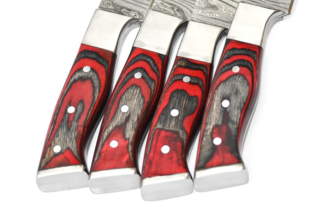Blade Length: 5" INCH Handle Material: Wood MPN: N/A Brand: M DAMASCUS Custom Bundle: Yes Features: With Handles Type: Steak Knife Set Includes: Chef's Knife, Knife Set, Steak Knife, Knives Set, Kitchen, Cutlery, Gift Material: Damascus Steel Blade Edge: Straight Food Compatibility: Fruit, Meat, Vegetables, Deep Fry, Universal Personalize: No Color: Multicolor Number of Items in Set: 4