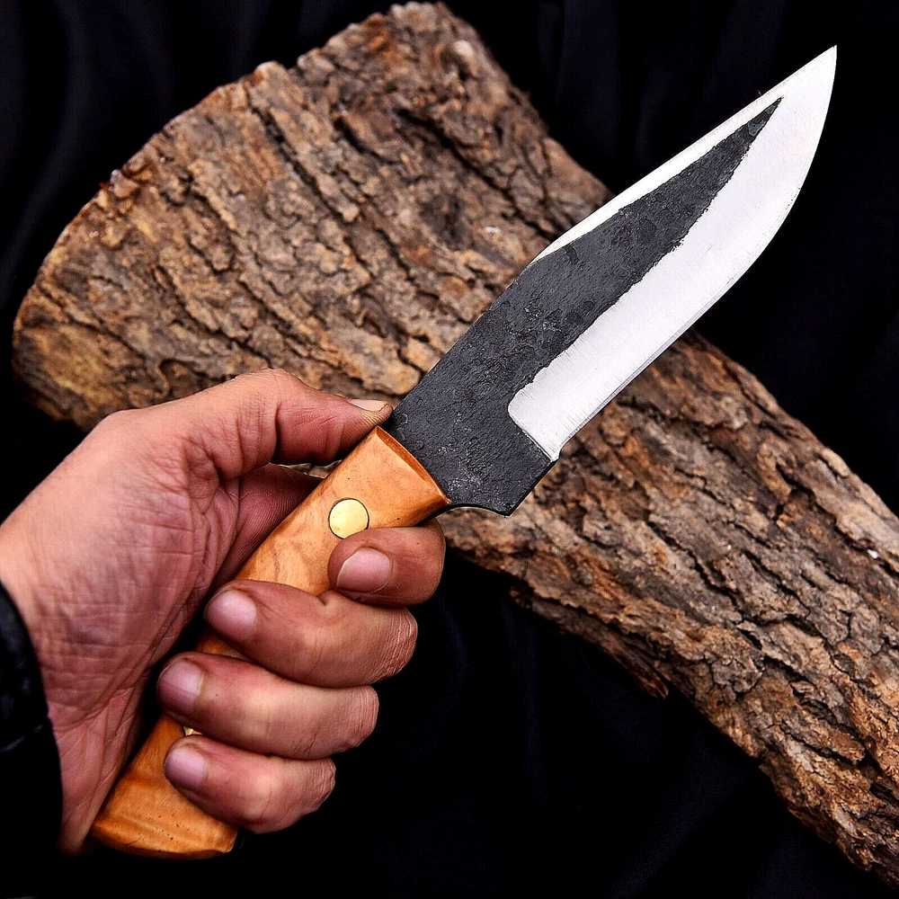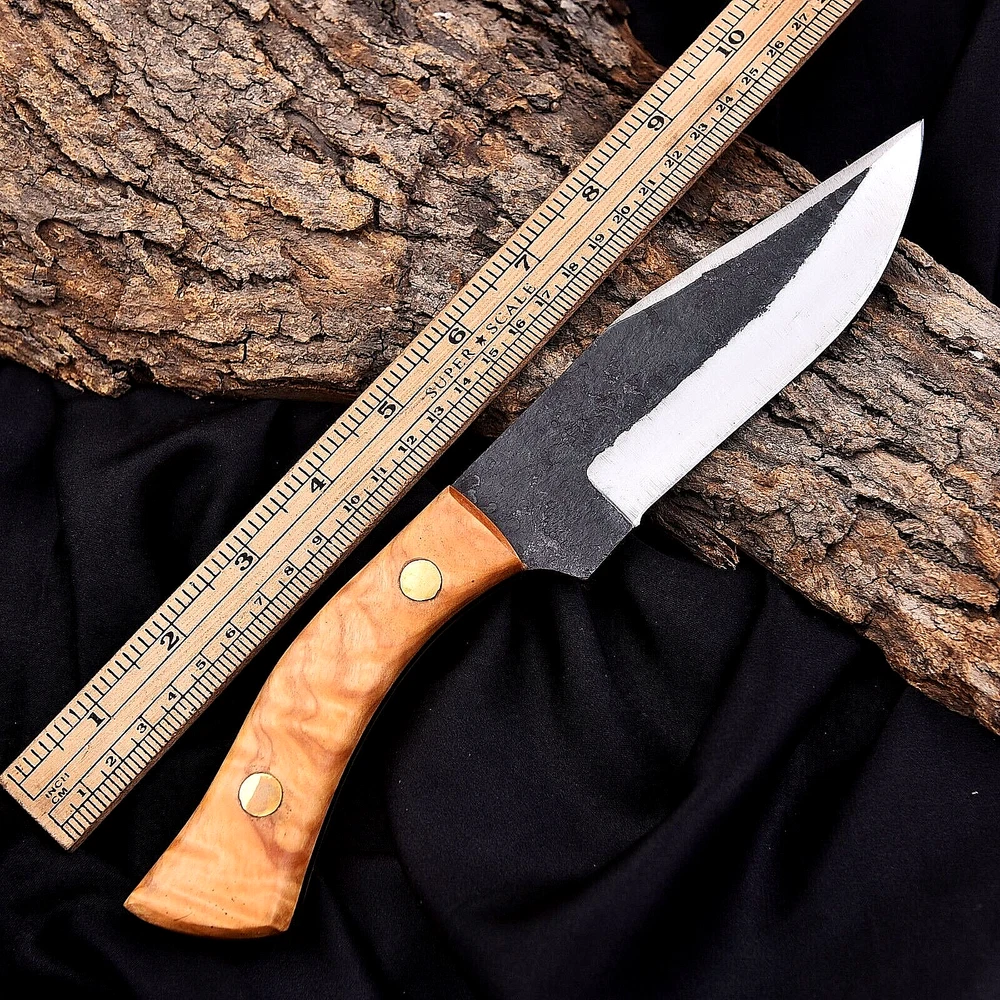 CUSTOM HAND MADE HIGH CARBON STEEL EVERY DAY CARRY SKINNER HUNTING KNIFE Wood Handle This superb design knife is hand forged. Blade of this knife has a nice file work. Thebalance and shape of this knife ensures perfect grip. OverallLength: 10.6” Inches BladeLength: 6 ”Inches HandleLength: 4.6 ”Inches Package Includes: with Leather Sheath Warning: Keep fingers clear of blades. Store away fromchildre