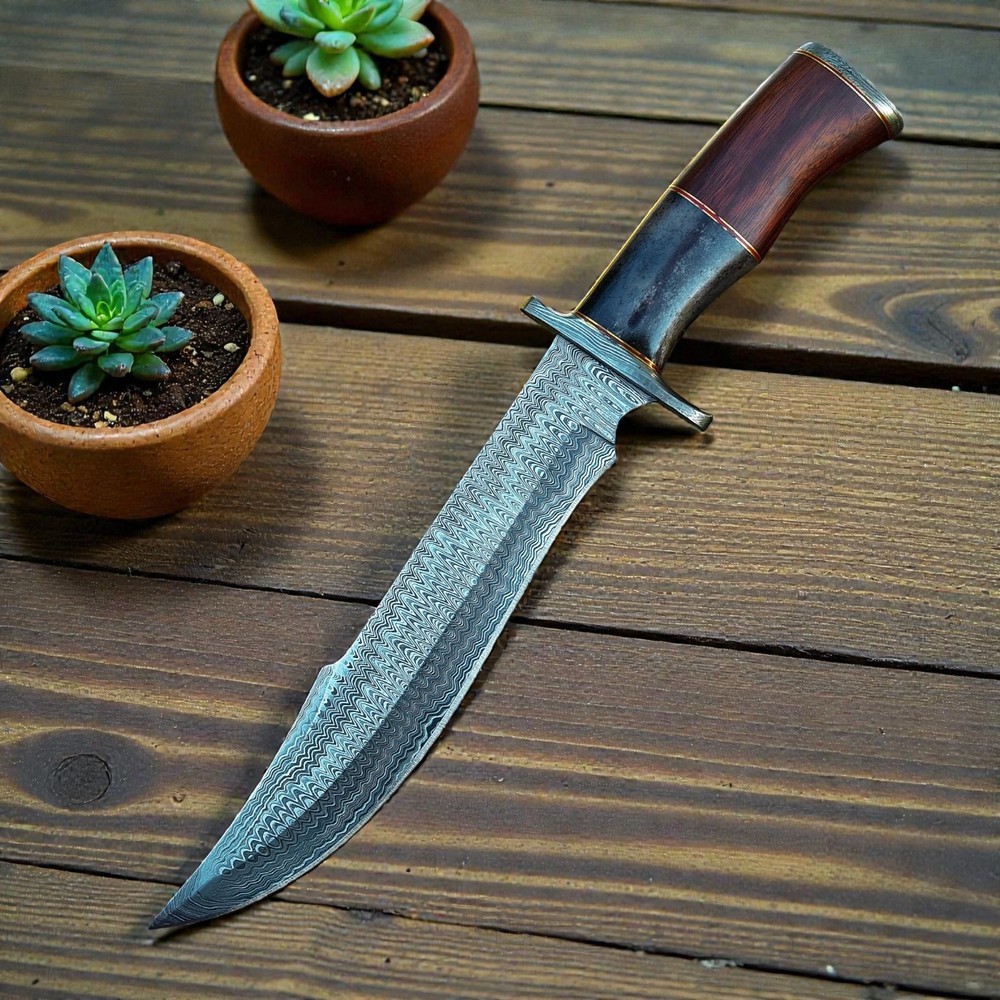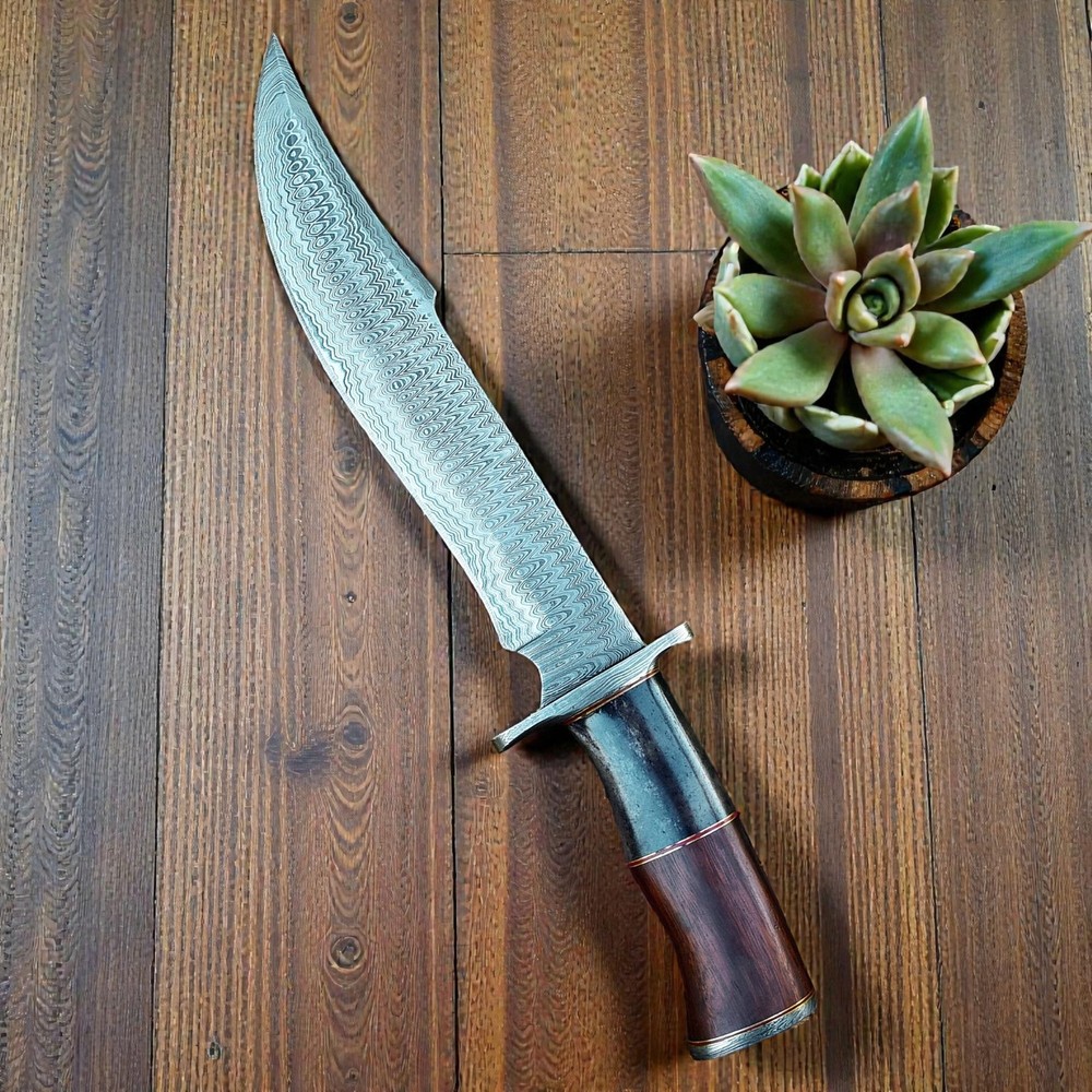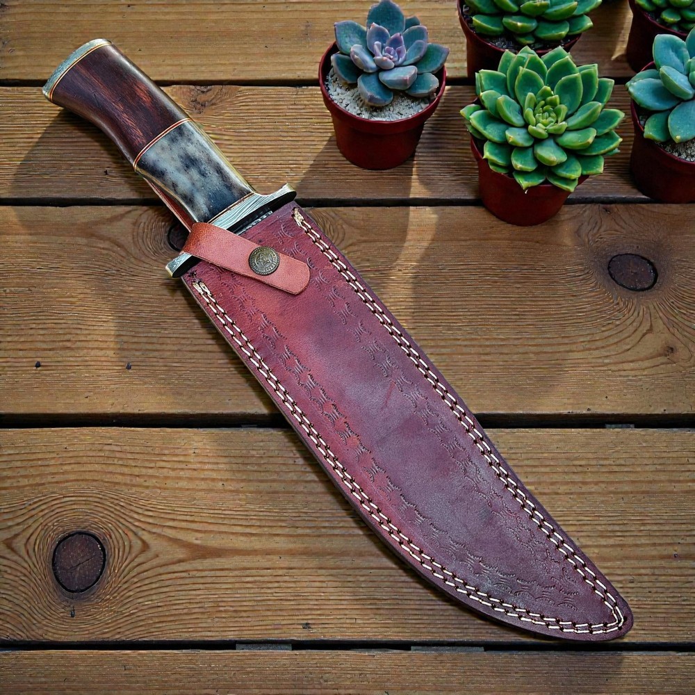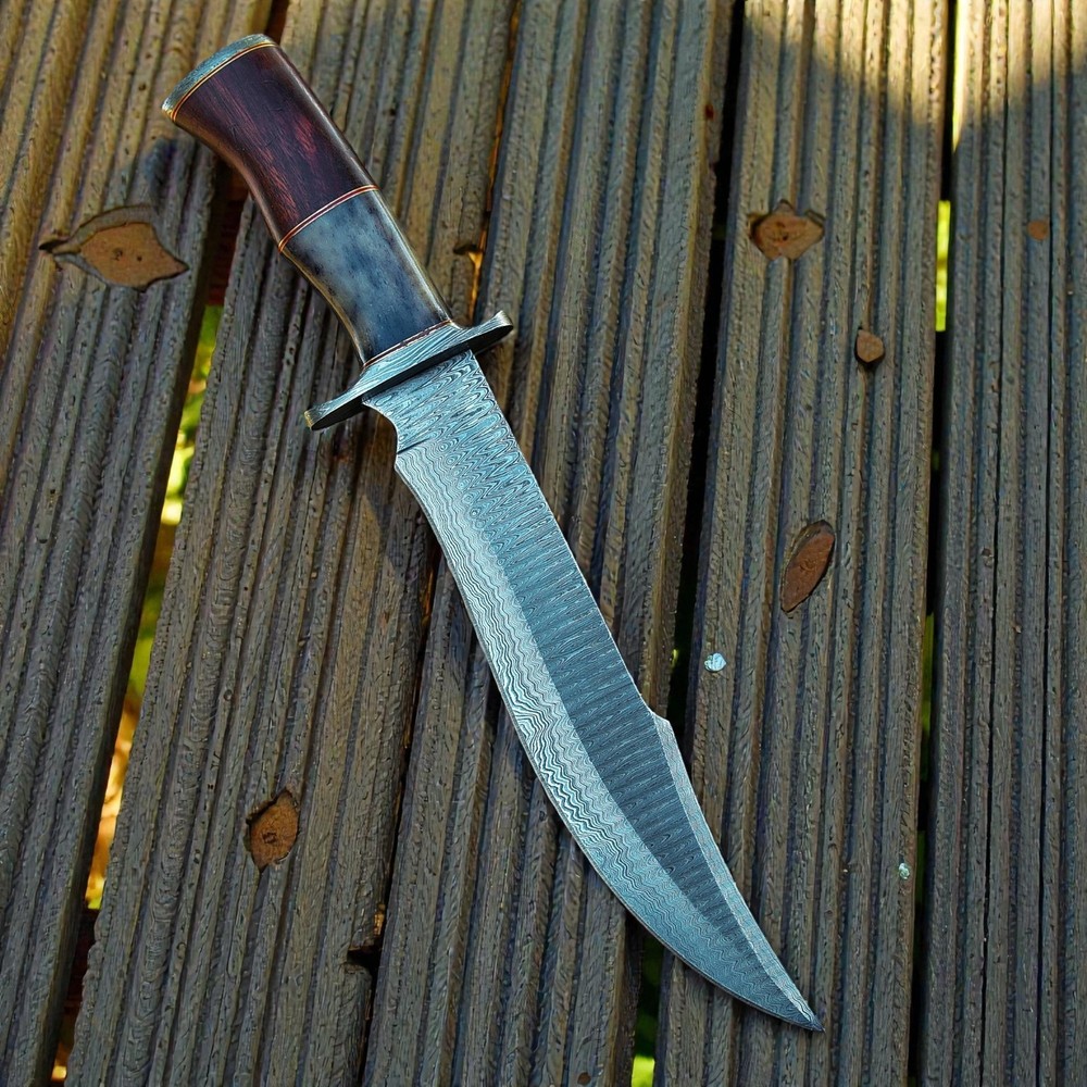 Modified Item: No Blade Type: Clip Point Handle Material: CAMEL BONE & WOOD WITH DAMASCUS STEEL BOLSTER HANDLE Type: Bowie, Hunting, Survival, Hiking, Bush Craft Features: Sheath Included Blade Edge: Plain Original/Reproduction: Original Tang: Full Blade Material: Damascus Steel Blade Length: 10" inches Handmade: Yes Brand: Damascus Vintage: No Blade Color: Gray Country of Origin: Pakistan Dexterity: Ambidextrous