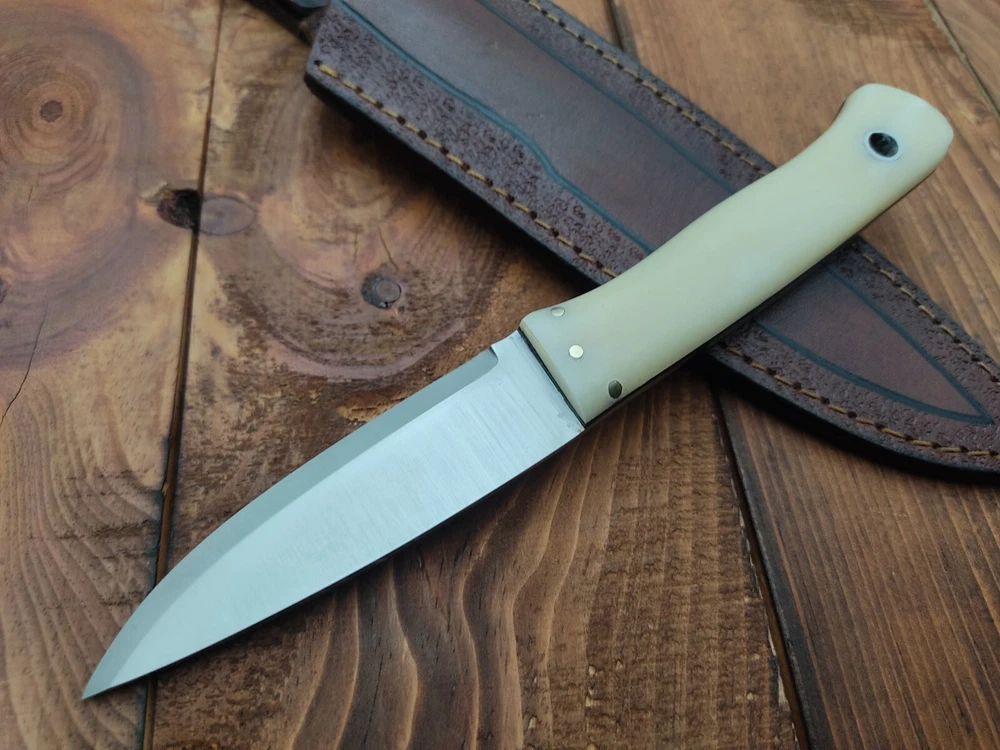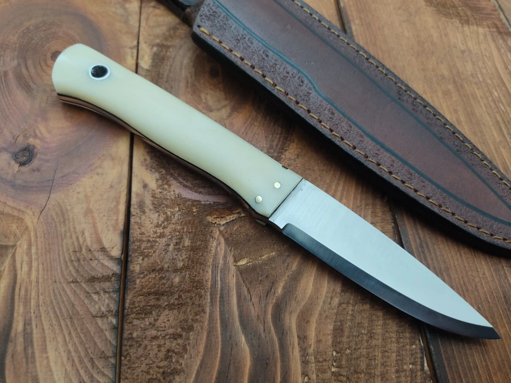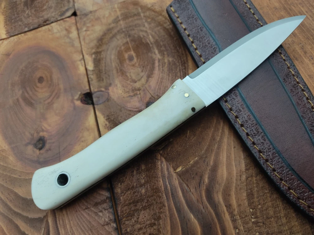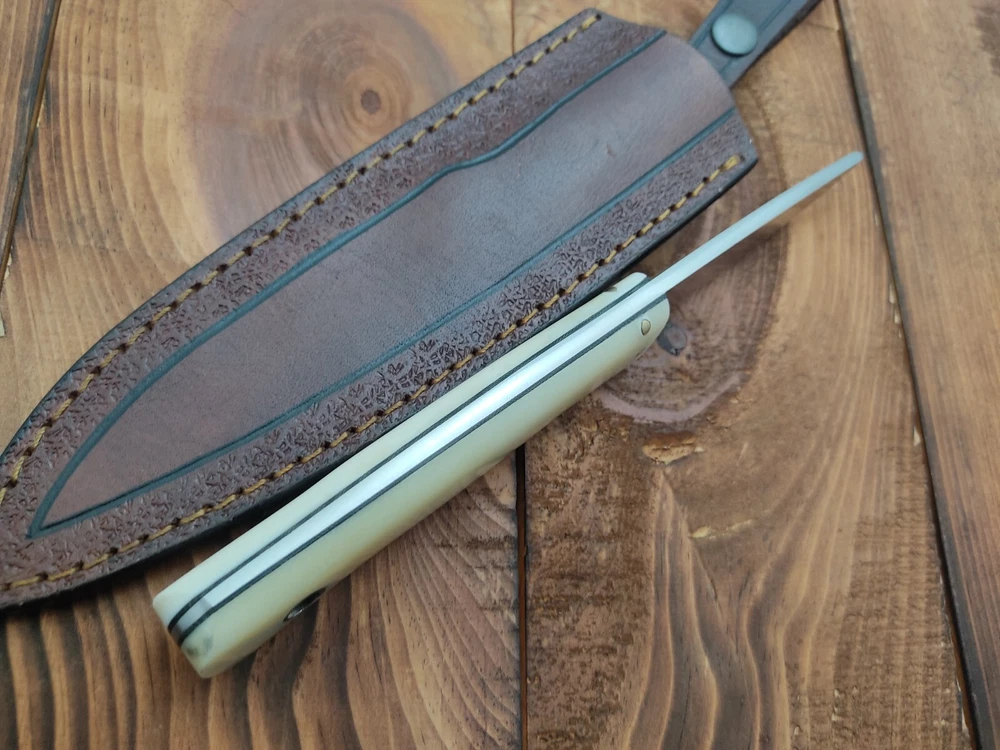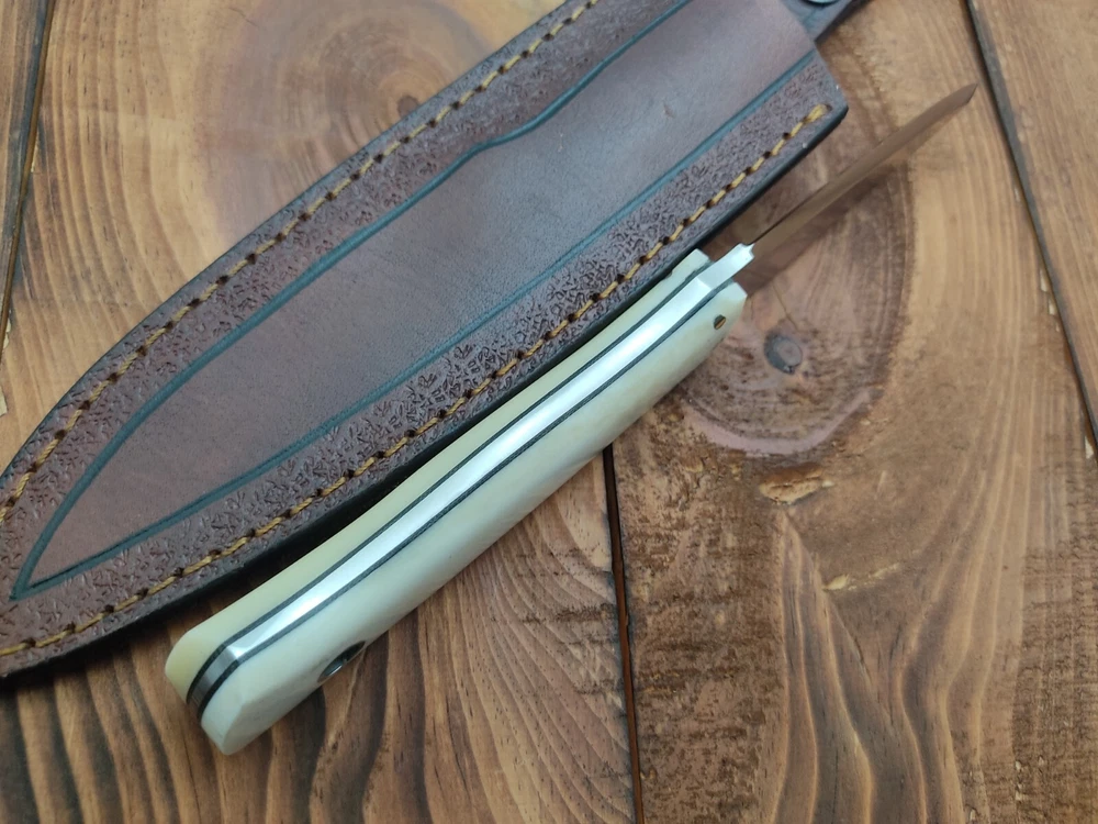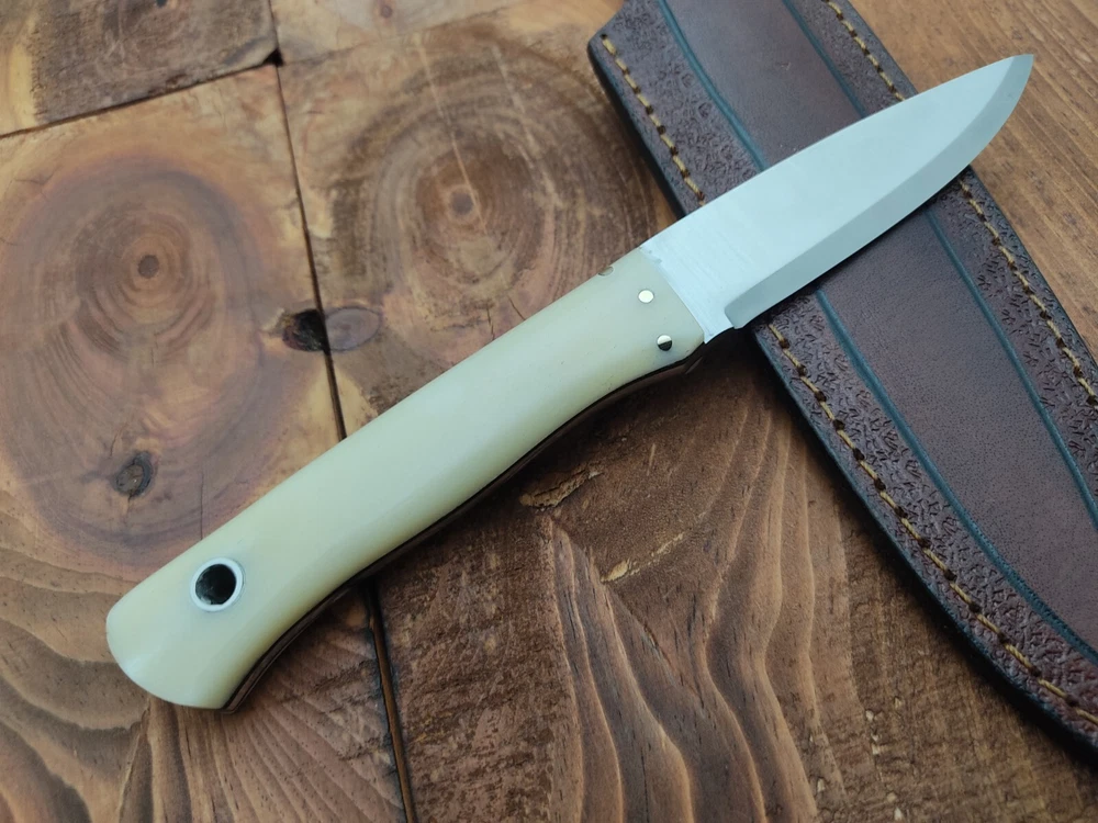 ITEM # HM-168 Fabulous Unique THUNDER STORKE Custom MADE KNIFE Custom Handmade Forged 1095 High Carbon Steel Scandi Grind BushCraft Camping Survival Outdoor Vintage Skinner Hunting Fixed Blade Knife Best For Gift High Carbon Steel holds an edge very well and is optimum for hunting and skinning use as well as tactical and military tasks. The steel is very corrosive and will tarnish and turn the blade black when blood and acidic liquids or chemicals get onto the blade. The blade will still work fine, but will lose the satin color when it was new. Bone Handle 1095 High Carbon Steel Blade RAZOR SHARP Gorgeous Handle & Blade 9" Long | Blade is 4.2" Long | Handle is 4.6 " 4 mm Thick Blade | Beautiful Worked Blade & Handle WORK OF ART This prestigious unique HUNTING knife was designed and custom made by THUNDERSTORKE . Blade was given excellent heat treatment and Rockwell hardness of the blade 58 to 60 . PAYMENT: As Per Ebay Requirement DISPATCH TIME: 2 to 3 DAYS AFTER RECEIVING YOUR PAYMENT COURIER / SHIPPING: When we print the postage label there is a number that is on the label. This number is called a "Delivery Confirmation Number". The post office is not like UPS or FEDX where they scan the mail at the receipt point and then track it to your door. What the post office does is scan the item when it is delivered (if they choose to) and then you will see that it was delivered. Sometimes they do scan it when you drop it off, but this is rare. If they did scan it at a sorting facility, you see it moving across the USA. But this is very rare. - eBay confuses the buyer with the "tracking number" next to the post offices "delivery confirmation number" when in reality there is not a tracking number. You can ask this at the post office and they will concur. We print labels off the internet using eBay's USPS shipping program and then we drop the packages off at the post office, similar if you were mailing a stamped letter. The post office is supposed to scan it "received" and they do this about 50% of the time. But sometimes they do not scan them. Do not worry, we did mail the item and it is on it's way to you. COMBINE SHIPPING OFFER: We Do Combine Shipping Discount On Multiple Purchase are as Follow. BUYER FEEDBACK AND Detailed Seller Ratings (DSR) SCORES : We spend a lot of time trying to describe our knives 100% perfect in detail, but sometimes we miss things. In the event that we missed something, upon inspection of the item when you receive it, let us know by contacting us via the "Contact Seller" link (next to our user ID profile) and allow us to solve your problem before leaving us low DSR scores (Detailed Seller Ratings) or neutral and negative feedback. - Help us, help ourselves to do better, with our future business on eBay by allowing us to correct our faults and fix the sale with you to a positive. We need to keep our scores high to continue to offer our great knives for sale on eBay. KNIFE CARE and SHEATHS : Leather sheaths pull moisture out of the air and tend to rust knife blades if not stored properly. When you are done using the knife, store it away from the leather sheath and put gun oil, Seal 1, or a similar protectant on the blade and store. Damascus, 1095HC, and D2 can rust and develop stains if not lubricated. AGE RESTRICTION: WE DON'T SELL KNIVES TO ANY ONE WHO IS UNDER AGE . GUARANTEE: If you are not happy with your purchase, we offer you a peace of mind guarantee if you return the product within 7 working days. We will refund your money back immediately ON RECEIVING THE KNIFE BACK IN ORIGINAL CONDITION. DELIBERATE TAMPERING WITH THE PRODUCT OR MISUSE WILL NOT QUALIFY FOR THE REFUND. SHIPPING CHARGES ARE NON-REFUNDABLE. DISCLAIMER: WHEN YOU ARE BIDDING ON THIS KNIFE YOU ARE CONFIRMING US THAT YOUR AGE QUALIFIES FOR THIS PURCHASE AND THIS IS A LEGAL PURCHASE. TAKES NO RESPONSIBILITY FOR ANY ILLEGAL PURCHASE Thank you, - Props in the Photos are NOT INCLUDED. Knife & Sheath ONLY .
