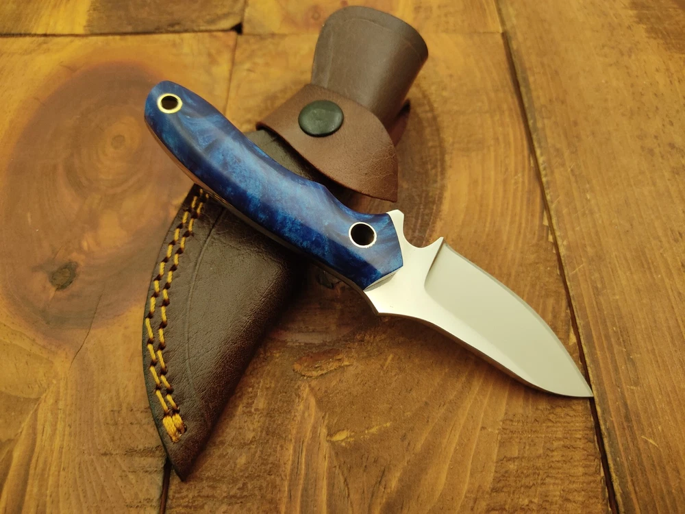 ITEM # HM-132 Fabulous Unique THUNDER STORKE Custom MADE KNIFE Custom Handmade Forged 12c27 Stainless Steel Camping Survival Outdoor Vintage Pocket Hunting Fixed Blade Knife 12c27 High Carbon Stainless Steel holds an edge very well and is optimum for hunting and skinning use as well as tactical and military tasks. The steel is very corrosive and will tarnish and turn the blade black when blood and acidic liquids or chemicals get onto the blade. The blade will still work fine, but will lose the satin color when it was new. Resin Handle 12c27 High Carbon Stainless Steel Blade RAZOR SHARP Gorgeous Handle & Blade 6.2" Long | Blade is 2.7" Long | Handle is 3.3" 4 mm Thick Blade | Beautiful Worked Blade & Handle WORK OF ART This prestigious unique HUNTING knife was designed and custom made by THUNDERSTORKE . Blade was given excellent heat treatment and Rockwell hardness of the blade 58 to 60 . PAYMENT: As Per Ebay Requirement DISPATCH TIME: 2 to 3 DAYS AFTER RECEIVING YOUR PAYMENT COURIER / SHIPPING: When we print the postage label there is a number that is on the label. This number is called a "Delivery Confirmation Number". The post office is not like UPS or FEDX where they scan the mail at the receipt point and then track it to your door. What the post office does is scan the item when it is delivered (if they choose to) and then you will see that it was delivered. Sometimes they do scan it when you drop it off, but this is rare. If they did scan it at a sorting facility, you see it moving across the USA. But this is very rare. - eBay confuses the buyer with the "tracking number" next to the post offices "delivery confirmation number" when in reality there is not a tracking number. You can ask this at the post office and they will concur. We print labels off the internet using eBay's USPS shipping program and then we drop the packages off at the post office, similar if you were mailing a stamped letter. The post office is supposed to scan it "received" and they do this about 50% of the time. But sometimes they do not scan them. Do not worry, we did mail the item and it is on it's way to you. COMBINE SHIPPING OFFER: We Do Combine Shipping Discount On Multiple Purchase are as Follow. BUYER FEEDBACK AND Detailed Seller Ratings (DSR) SCORES : We spend a lot of time trying to describe our knives 100% perfect in detail, but sometimes we miss things. In the event that we missed something, upon inspection of the item when you receive it, let us know by contacting us via the "Contact Seller" link (next to our user ID profile) and allow us to solve your problem before leaving us low DSR scores (Detailed Seller Ratings) or neutral and negative feedback. - Help us, help ourselves to do better, with our future business on eBay by allowing us to correct our faults and fix the sale with you to a positive. We need to keep our scores high to continue to offer our great knives for sale on eBay. KNIFE CARE and SHEATHS : Leather sheaths pull moisture out of the air and tend to rust knife blades if not stored properly. When you are done using the knife, store it away from the leather sheath and put gun oil, Seal 1, or a similar protectant on the blade and store. Damascus, 1095HC, and D2 can rust and develop stains if not lubricated. AGE RESTRICTION: WE DON'T SELL KNIVES TO ANY ONE WHO IS UNDER AGE . GUARANTEE: If you are not happy with your purchase, we offer you a peace of mind guarantee if you return the product within 7 working days. We will refund your money back immediately ON RECEIVING THE KNIFE BACK IN ORIGINAL CONDITION. DELIBERATE TAMPERING WITH THE PRODUCT OR MISUSE WILL NOT QUALIFY FOR THE REFUND. SHIPPING CHARGES ARE NON-REFUNDABLE. DISCLAIMER: WHEN YOU ARE BIDDING ON THIS KNIFE YOU ARE CONFIRMING US THAT YOUR AGE QUALIFIES FOR THIS PURCHASE AND THIS IS A LEGAL PURCHASE. TAKES NO RESPONSIBILITY FOR ANY ILLEGAL PURCHASE Thank you, - Props in the Photos are NOT INCLUDED. Knife & Sheath ONLY .