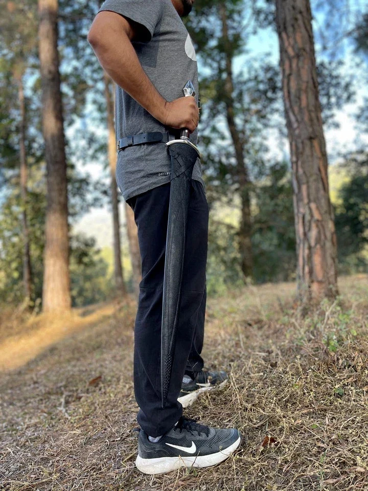 Custom Handmade Carbon Steel Sword by MUHA BLADES Description: Experience the craftsmanship of a fully handmade blade from MUHA BLADES. Each piece is forged with care from 5160 High‑Carbon Steel, combining durability, Sharpness, and Balance. Perfect for collectors, outdoor enthusiasts, and those who appreciate fine craftsmanship. Specifications Blade Material: 5160 High‑carbon steel Overall Length: 34 inches Blade Length: 28 inches Handle Length: 6 inches Overall Weight: 1690 grams Rockwell Hardness: 55-58 HR Handle: Full tang with custom Wood Grip Guard & Pommel: Handcrafted, strong, and durable Sheath: Cow Hide Leather Sheath Included Features Hand‑forged and heat‑treated for strength and sharpness Balanced for both display and practical use Carefully polished with attention to every detail Care Instructions To maintain your blade: Keep it clean and dry after each use Apply a thin coat of oil to prevent rust Store in a dry place and avoid long‑term storage in leather sheaths Shipping & Handling Worldwide shipping with secure packaging Tracking details will be provided after dispatch Remote Area Delivery: Please note that for orders going to remote or rural areas, the courier (FedEx, DHL, UPS) may transfer the package to your local postal service for the final stage of delivery. This process can add extra days to the estimated delivery time. We appreciate your patience and understanding as we ensure your package arrives safely Note: This is a handmade item. Minor variations in finish and size add to its unique character. THANK YOU!