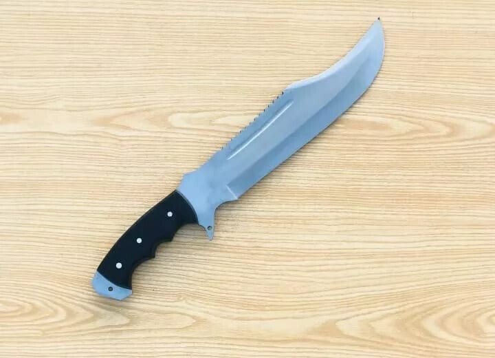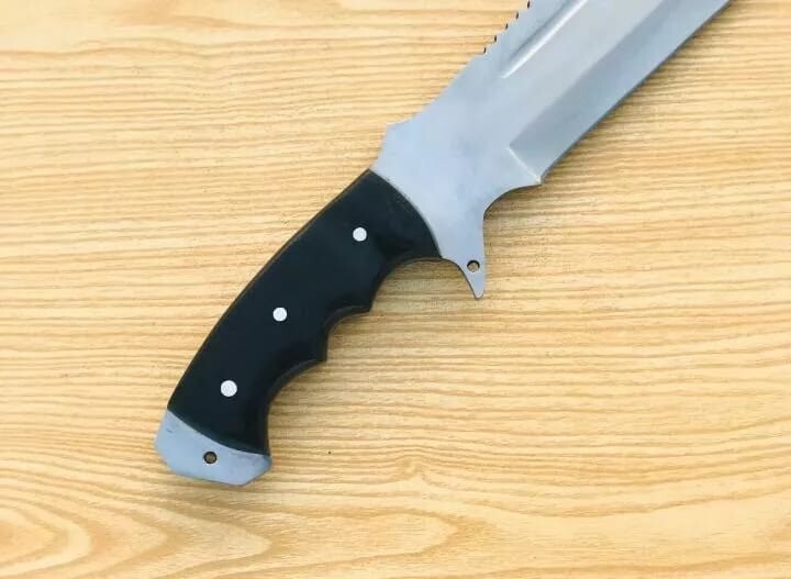 Item details Highlights Designed by Hafiz Crafts Supplies for making crafts Materials: Blade material: Carbon steel; Handle material: Black Micarta Hand forged -10 inches long Blade, made of carbon steel-Unpolished Blade for Heavy duties use. -Balance water tempered on the edge-so its very strong. -5 inches full tang handle made of Black Micarta. -Sheath included -Personalization Available (Name, logo or Text Engraving). Crafted for the adventure-seeker, this Custom Handmade Carbon Steel Blade Survival Bowie Knife is a robust companion for enthusiasts of hunting and camping. Its full tang construction ensures durability and balance, while the high-carbon steel blade promises a sharp, resilient edge. The elegant clip point blade design, measuring 10 inches, combines precision with versatility. The knife features a comfortably contoured Black Micarta handle that provides a secure grip in all conditions. An included sheath offers protection and ease of carrying. Exquisitely made by Hafiz Crafts in Pakistan, this knife is an original, handmade piece that reflects a passion for the art of knife-making and an appreciation for traditional designs.