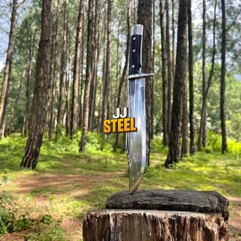 CU STOM HANDMADE CARBON STEEL BOWIE KNIFE '' LEATHER SHEATH INCLUDED MADE WITH PURE COW SKIN '' " OUR ALL PARCELS ARE DUTY / TARIFF PAID YOU DON'T NEED TO PAY TAX WHILE RECEIVING YOUR PACKAGE WE WILL PAY FROM OUR SIDE, BUT DELIVERY WILL TAKE 2-3 MORE DAYS AS REGULAR, AND PARCEL WILL START TRACKING AFTER REACHING TO YOUR COUNTRY " CUSTOM HANDMADE CARBON STEEL BOWIE KNIFE 15.00'' INCHES WITH LEATHER SHEATH BEST GIFT FOR YOUR LOVED ONCE BEST GIFT FOR HER ANNIVERSARY GIFT CHRISTMAS GIFT WEDDING GIFT PRODUCT SPESIFICATION Blade Material: Carbon Steel Handle Material: Wood Overall Length: 15.00'' inches Blade Length: 10.00'' inches Handle Length: 5.00'' inches With leather Sheath DESCRIPTION This superb design knife is hand forged.?The blade of this knife has a nice file work and is made of 512 layers of stainless steel and high carbon steel with a hardness of 57-59 HRC. This robust knife is lab tested under intense conditions, the balance and shape of this knife ensure perfect grip. SHIPPING DHL, USPS TRACKABLE Worldwide Shipping SPECS Best Gift For Your Love Once & Hunter Friends. Bowie Knife, Hunting Knife, Camping Knife, Bushcraft Knife, Survival Knife, Gift Knife, Damascus Steel Knife, Leather Sheath? RESTRICTION You Must Be Over 18 Years Of Age To Purchase These Products, The Buyer is Fully Responsible For Local Laws And Regulations Concerning the Purchase And Possession Of Knives, Swords, And Other Cutlery Tools, By Making A Purchase You Are Confirming Our Age Policy. HAVE A SAFE SHOPPING PLEASE LEAVE A HONEST FEEDBACK