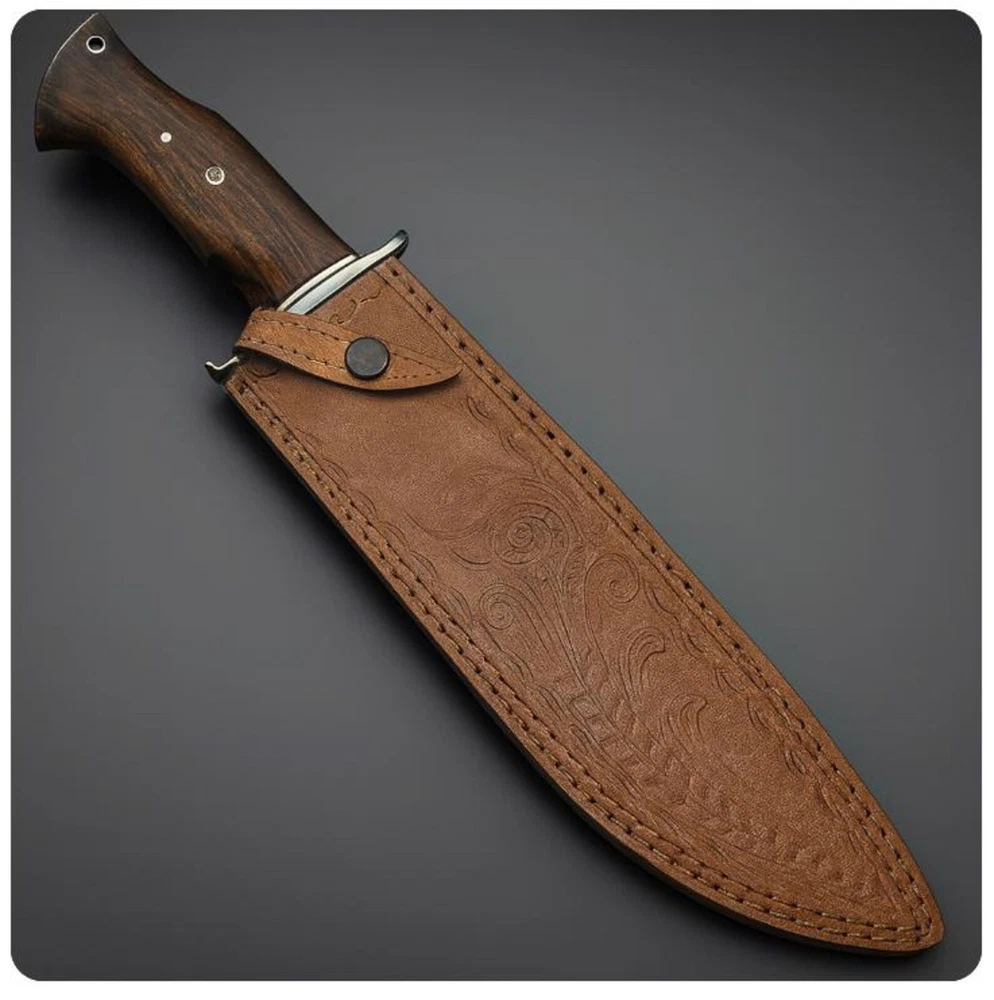 Blade Color: Silver Blade Length: Over 5in. Blade Type: Clip Point Handmade: Yes Tang: Full Country of Origin: Pakistan Original/Reproduction: Original Blade Material: Carbon Steel Type: Bowie Knife Brand: jj-steel Features: Sheath Included Blade Edge: Plain Year: This Year Latest Handle Material: Wood Dexterity: Ambidextrous