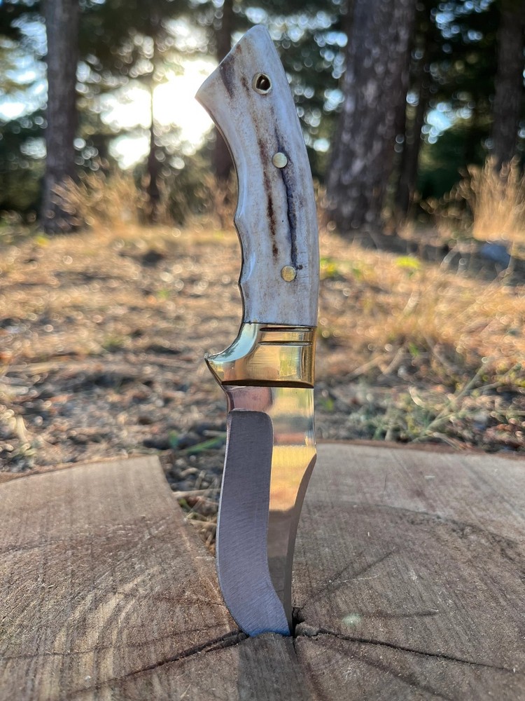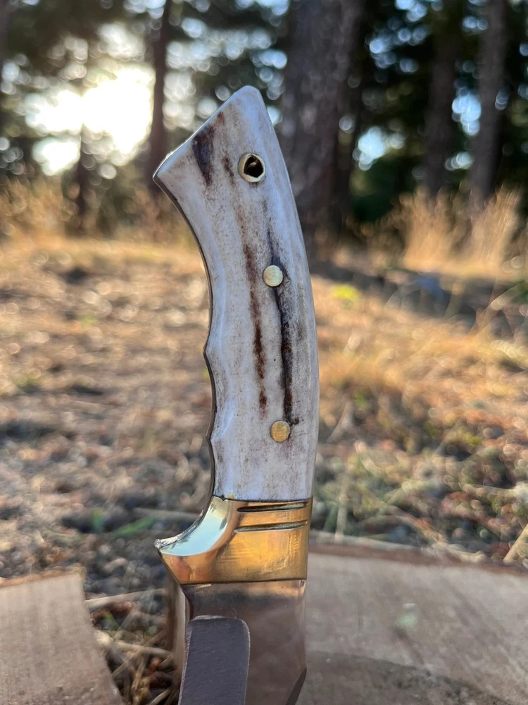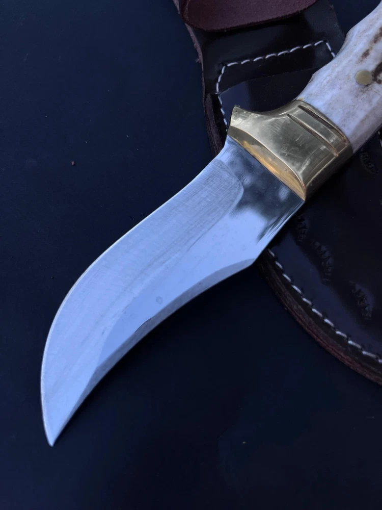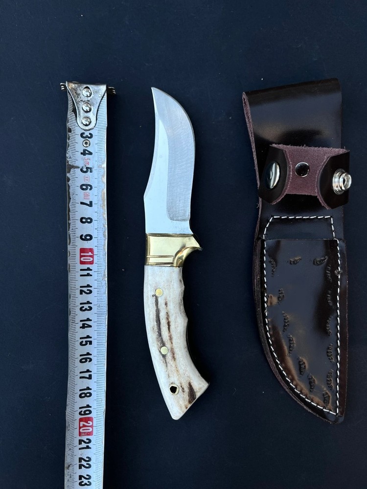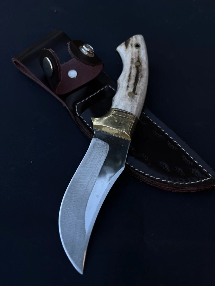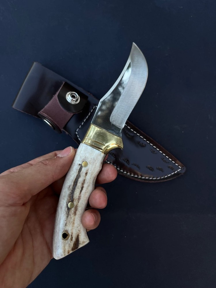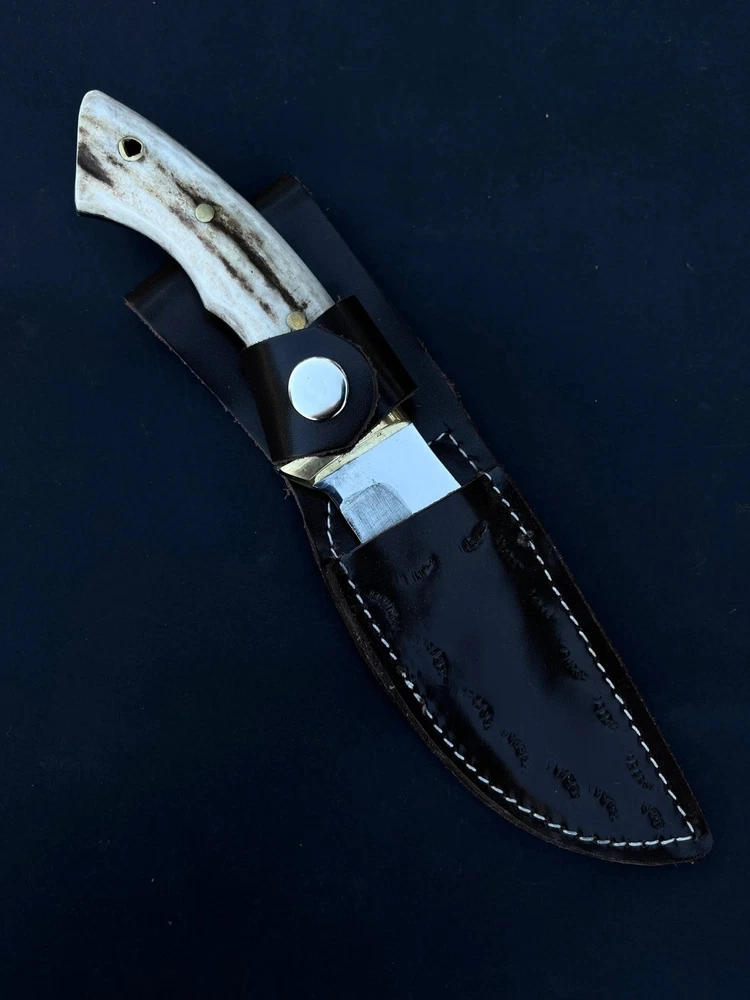 CU STOM HANDMADE CARBON STEEL HUNTING SKINNING KNIFE '' LEATHER SHEATH INCLUDED MADE WITH PURE COW SKIN '' CUSTOM HANDMADE CARBON STEEL BOWIE KNIFE 8.00'' INCHES WITH LEATHER SHEATH BEST GIFT FOR YOUR LOVED ONCE BEST GIFT FOR HER ANNIVERSARY GIFT CHRISTMAS GIFT WEDDING GIFT PRODUCT SPESIFICATION Blade Material: Carbon Steel Handle Material: Stag/Antler Overall Length: 8.00'' inches Blade Length: 4.00'' inches Handle Length: 4.00'' inches With leather Sheath DESCRIPTION This superb design knife is hand forged.?The blade of this knife has a nice file work and is made of 512 layers of stainless steel and high carbon steel with a hardness of 57-59 HRC. This robust knife is lab tested under intense conditions, the balance and shape of this knife ensure perfect grip. SHIPPING DHL, USPS TRACKABLE Worldwide Shipping SPECS Best Gift For Your Love Once & Hunter Friends. Bowie Knife, Hunting Knife, Camping Knife, Bushcraft Knife, Survival Knife, Gift Knife, Damascus Steel Knife, Leather Sheath? RESTRICTION You Must Be Over 18 Years Of Age To Purchase These Products, The Buyer is Fully Responsible For Local Laws And Regulations Concerning the Purchase And Possession Of Knives, Swords, And Other Cutlery Tools, By Making A Purchase You Are Confirming Our Age Policy. HAVE A SAFE SHOPPING PLEASE LEAVE A HONEST FEEDBACK