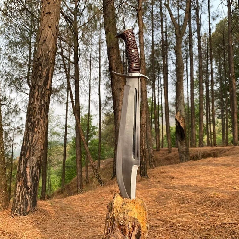 Item details Highlights Designed by Hafiz Crafts Supplies for making crafts Materials: Blade material: Carbon steel; Handle material: Wood Specifications: Blade Length: 16 inches Handle Length: 6 inches The Custom Handmade Carbon Steel Blade Tactical Bowie Knife is a versatile and durable tool designed for hunting, camping, and other outdoor activities. Handcrafted in Pakistan by Hafiz Crafts, this Bowie knife features a 16-inch full tang blade made of carbon steel with a clip point design. The ambidextrous knife has a plain edge and a lanyard hole for convenient carrying, and it comes with a sheath for safe storage. The handle is made of wood, adding a traditional and rustic touch to this original and functional piece. This custom handmade tactical Bowie knife is crafted by Hafiz Crafts in Pakistan, featuring a full tang carbon steel blade with a clip point design. The 16-inch blade has a plain edge and a silver color, making it ideal for hunting and camping activities. The ambidextrous knife has a wooden handle and includes a lanyard hole and sheath for convenience. This unique and original piece is perfect for collectors and outdoor enthusiasts seeking a high-quality and handcrafted tool for their adventures.