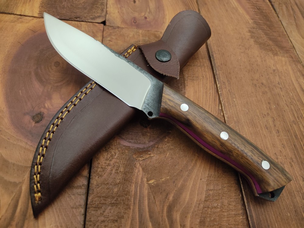 ITEM # HM-158 Fabulous Unique THUNDER STORKE Custom MADE KNIFE Custom Handmade Forged 1095 High Carbon Steel Camping Survival Outdoor Vintage Hunting Fixed Blade Knife High Carbon Steel holds an edge very well and is optimum for hunting and skinning use as well as tactical and military tasks. The steel is very corrosive and will tarnish and turn the blade black when blood and acidic liquids or chemicals get onto the blade. The blade will still work fine, but will lose the satin color when it was new. Rose Wood Handle 1095 High Carbon Steel Blade RAZOR SHARP Gorgeous Handle & Blade 10.2" Long | Blade is 5.1" Long | Handle is 5.1" 4 mm Thick Blade | Beautiful Worked Blade & Handle WORK OF ART This prestigious unique HUNTING knife was designed and custom made by THUNDERSTORKE . Blade was given excellent heat treatment and Rockwell hardness of the blade 58 to 60 . PAYMENT: As Per Ebay Requirement DISPATCH TIME: 2 to 3 DAYS AFTER RECEIVING YOUR PAYMENT COURIER / SHIPPING: When we print the postage label there is a number that is on the label. This number is called a "Delivery Confirmation Number". The post office is not like UPS or FEDX where they scan the mail at the receipt point and then track it to your door. What the post office does is scan the item when it is delivered (if they choose to) and then you will see that it was delivered. Sometimes they do scan it when you drop it off, but this is rare. If they did scan it at a sorting facility, you see it moving across the USA. But this is very rare. - eBay confuses the buyer with the "tracking number" next to the post offices "delivery confirmation number" when in reality there is not a tracking number. You can ask this at the post office and they will concur. We print labels off the internet using eBay's USPS shipping program and then we drop the packages off at the post office, similar if you were mailing a stamped letter. The post office is supposed to scan it "received" and they do this about 50% of the time. But sometimes they do not scan them. Do not worry, we did mail the item and it is on it's way to you. COMBINE SHIPPING OFFER: We Do Combine Shipping Discount On Multiple Purchase are as Follow. BUYER FEEDBACK AND Detailed Seller Ratings (DSR) SCORES : We spend a lot of time trying to describe our knives 100% perfect in detail, but sometimes we miss things. In the event that we missed something, upon inspection of the item when you receive it, let us know by contacting us via the "Contact Seller" link (next to our user ID profile) and allow us to solve your problem before leaving us low DSR scores (Detailed Seller Ratings) or neutral and negative feedback. - Help us, help ourselves to do better, with our future business on eBay by allowing us to correct our faults and fix the sale with you to a positive. We need to keep our scores high to continue to offer our great knives for sale on eBay. KNIFE CARE and SHEATHS : Leather sheaths pull moisture out of the air and tend to rust knife blades if not stored properly. When you are done using the knife, store it away from the leather sheath and put gun oil, Seal 1, or a similar protectant on the blade and store. Damascus, 1095HC, and D2 can rust and develop stains if not lubricated. AGE RESTRICTION: WE DON'T SELL KNIVES TO ANY ONE WHO IS UNDER AGE . GUARANTEE: If you are not happy with your purchase, we offer you a peace of mind guarantee if you return the product within 7 working days. We will refund your money back immediately ON RECEIVING THE KNIFE BACK IN ORIGINAL CONDITION. DELIBERATE TAMPERING WITH THE PRODUCT OR MISUSE WILL NOT QUALIFY FOR THE REFUND. SHIPPING CHARGES ARE NON-REFUNDABLE. DISCLAIMER: WHEN YOU ARE BIDDING ON THIS KNIFE YOU ARE CONFIRMING US THAT YOUR AGE QUALIFIES FOR THIS PURCHASE AND THIS IS A LEGAL PURCHASE. TAKES NO RESPONSIBILITY FOR ANY ILLEGAL PURCHASE Thank you, - Props in the Photos are NOT INCLUDED. Knife & Sheath ONLY .