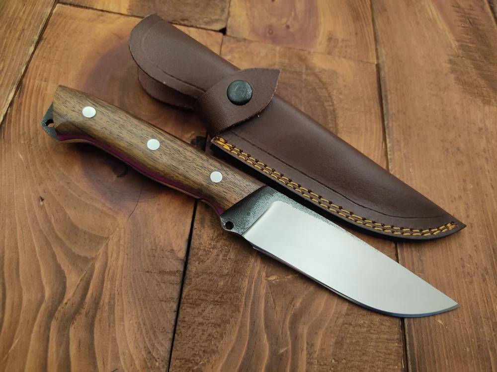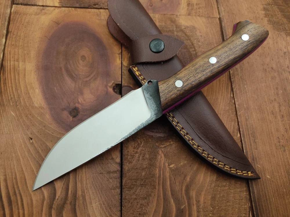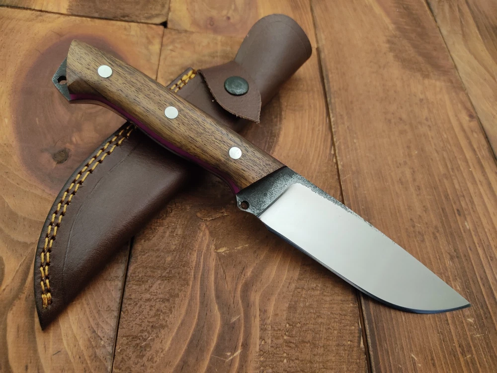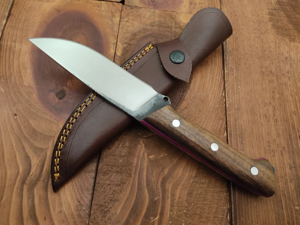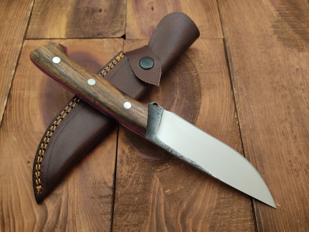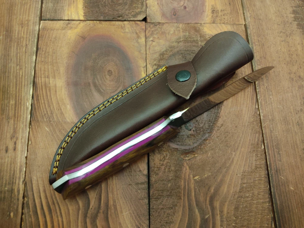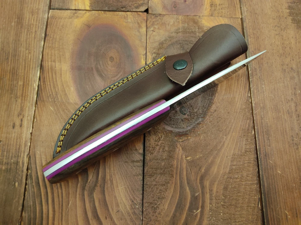 I have purchased several knives from this seller and bought this knife as a gift. Thunderstorke knives don't disappoint! the pattern welded. The pattern welded Damascus bland and spalted oak handle scales are nicely crafted and provide a unique, natural look. The item arrived promptly, exactly as described, and was well-packaged. This seller consistently delivers high-quality products at great prices. Highly recommended!