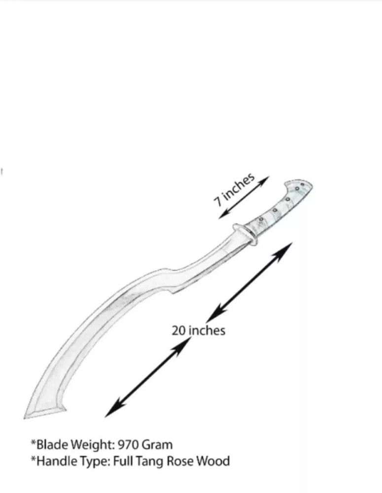 Product Details: Knives Overall Length: Approximately 27.00"inch Blade Length: 20.00"inch Handle Length: 7.00"inch Handle Material: Wood Note: Custom & Bulk Orders Also Accepted PAYMENTS am using stock knife pictures, you “ll receive little bit vary instead the pictures, carbedn steel & Wood. Steel D2 .Handel Material. Damascus . grains are different. Thank you Shipping and Handling: WE USE TRACK ABLE COURIER SERVICE LIKE DHL UPS PAKISTAN POST REMOTE AREA CUSTOMER MUST PAY 30 $ EXTRA SHIPPING Returns: Returns are accepted within 14 days of delivery where item sold is unused & undamaged. Buyer will pay the return cost. Age Requirements & Verification: Strictly sold to 18+ ONLY. We may ask you to produce your ID to prove your age requirements. Please help us to keep our community safe. QUESTION If you have any question feel free to send us message we aim to answer all questions within 1 Day. FEEDBACK If you are not satisfied with our service please contact us before leaving any negative or natural feedback. We will resolve all issues as quickly as possible.