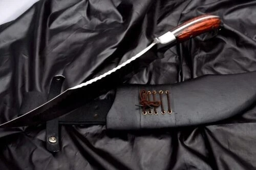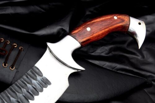 Custom Handmade Carbon Steel Blade Survival Bowie Knife - Hunting - Camping. Measurements: Over all Length: 18 inches Blade Length: 12 inches Handle Length: 6 inches Item details Handmade Description - Made of 5160 Carbon steel with oil quench, Sharpen, Ready to use -Blade-Tempered- Semi-Polished-Tempered -Full tang Handle Made of Rosewood. - Scabbard made of Leather. -Comes with Warranty. Shipping : With in 7 to 8 working days through DHL .