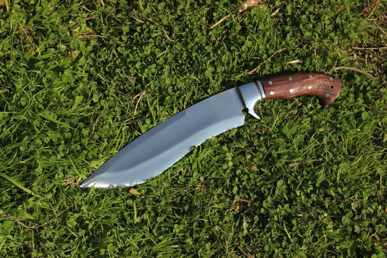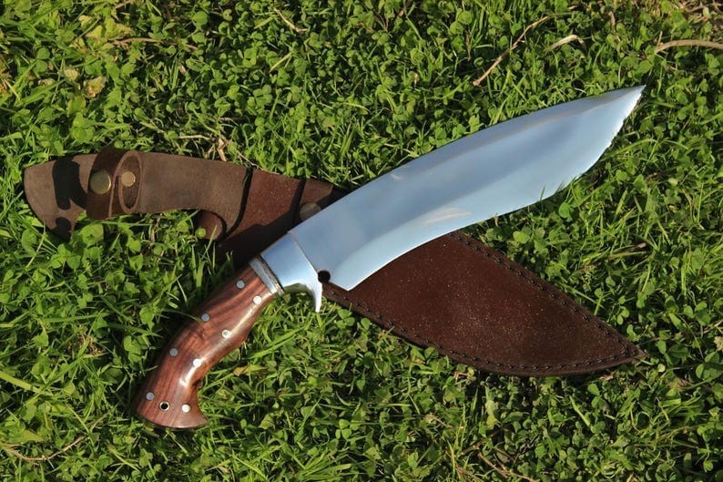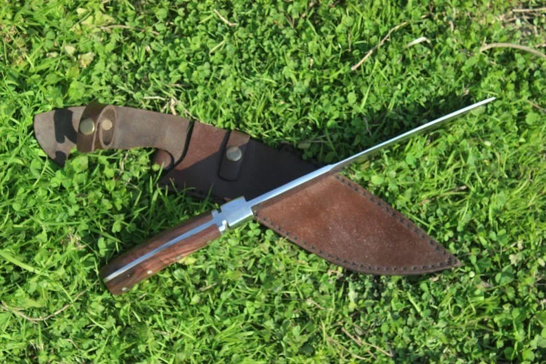 Blade Length: 10-Inches Blade Color: Silver Features: Sheath Included, Lanyard Hole Type: Bowie Knife, Hunting, Survival Handle Material: Wood Blade Edge: Plain Dexterity: Ambidextrous Blade Type: Drop Point Brand: HAFIZ BLADES Tang: Full Blade Material: Carbon Steel Country/Region of Manufacture: Pakistan Original/Reproduction: Original Handmade: Yes