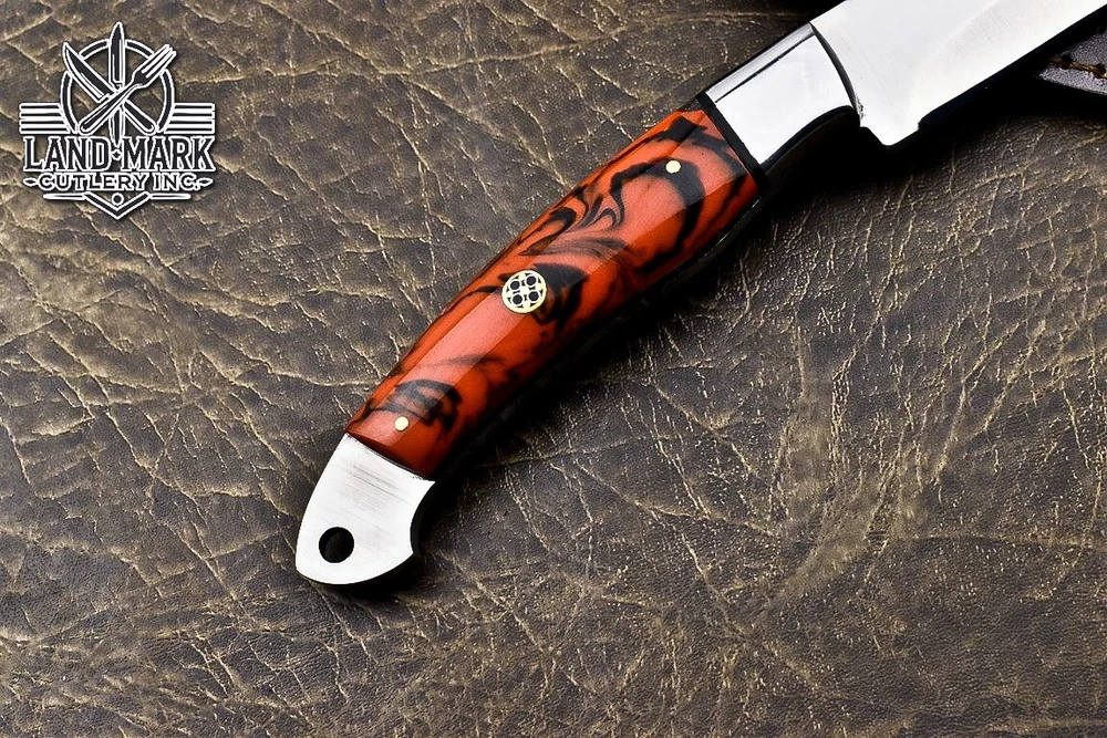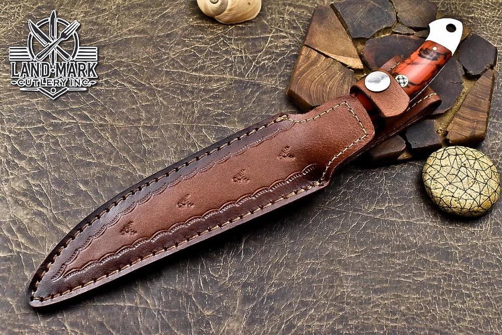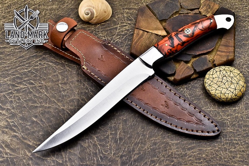 Custom Hand Made D2 STEEL HUNTING BOWIE KNIFE WITH RESIN HANDLE We offer a shipping discount for More then one purchased . And discount will be apply on combine invoice, Discount will not apply on separate payment. ITEM DETAILS OVER ALL LENGTH 13.0 inches long (Approx) HANDLE LENGTH 5.0 inches long (Approx) BLADE LENGTH 8.0 inches long (Approx) BLADE HARDNESS 58-60 HRC Which Holds The Sharp Edge For Long Time. HANDLE RESIN COVER LEATHER SHEATH This Awesome custom made KNIFE has a nice hand forged with the combination of 4340 & 1080 steel. HOW OUR DAMASCUS IS MADE: All our Damascus is real and not just an acid etch. Damascus is a mixture of 1080HC and 4340 nickel carbon. You heat them up together and then fold the bar over and over to get the desired layers, ours are 396 layers. Then you burn the blade in acid, and it turns the nickel satin color and the high carbon turns blackish gray. This is how the layers are exposed to show the layers of the new steel created coined "Damascus". All Damascus is acid etched to show the layers. If you high polish the metal it will be shinny satin like all steels. Only after you burn the sides of the blade with acid do you see the layers of the two steels. Makes sense? After we make our knives we high polish the handles and put an edge on the blade. The high polishing buffs off the acid burned layer of the handle, and the blade edge is sharpened and the acid burned edge becomes satin. You can re-burn the tang of the blade near the handles and the edge of the blade and it will show the layers once more. All our knives are hand made, durable and unique ***** YOU WILL RECEIVED THE SAME KNIFE Qality Standards Our Damascus blades are made from high quality non-stainless steels which rival or exceed any Damascus blade made from the 10 series with 4340. Our Damascus combination has taken years to perfect and has been tested under a variety of application which will offer professional performance in categories of toughness, strength (lateral stress) and edge honing and holding ability. In a 5 spot Rockwell test our blades will average near or close to 58 which offers a perfect balances between its toughness and strength.Our blades due to carbon content need to be regularly treated with wax and/or 3 in 1 oil to maintain its superior quality. Questions if you have any question feel free to send us message we aim to answer all questions within 24 hours Feedback If you are not satisfied with our service please contact us before leaving any negative or natural feedback. We will resolve all issues as quickly as possible. Disclaimer We are not responsible for any injuries associated with the use of our tools. Our products are intended for legal use only by responsible buyers. Therefore, we will not sell our products to anyone under the age of 18. Before bidding please check your country laws as some countries Custom don't allow this. If your purchase is held by Custom Authorities in your country/State we will not be responsible for that and no refund will be issued Shipping We offer a 20% shipping discount for More then one purchased . And discount will be apply on combine invoice, Discount will not apply on separate payment We ship within 24 hours after receiving complete payment but this can be delayed due to week ends or Governments and Religious Festivals . . This is beyond our control and we apologize for this inconvenience. Precautions Our Tools are very sharp so open and use them very carefully We are not responsible for any injuries associated with the use of our tools Tips to Care knife 1. NEVER STORE YOUR KNIFE FOR LONG TIME IN LEATHER SHEATH. 2. LEATHER CAN ABSORB WATER, WHICH WILL RUST THE KNIFE. 3. ALWAYS CLEAN THE BLADE AFTER USING WITH OIL OR WAX