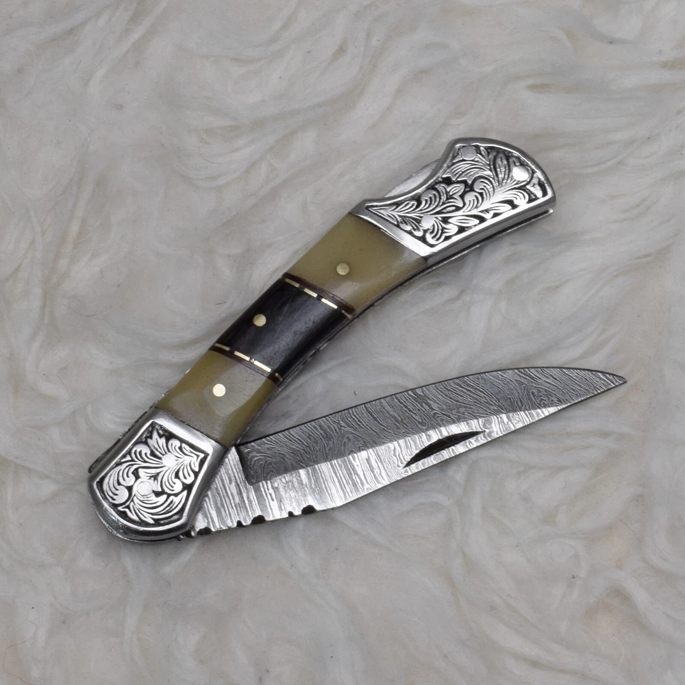 Product Details: Blade Length: 3.5 inches Handle Length: 4.5 inches Handle Material: Camel Bone Blade Material: Genuine Damascus Steel Blade Hardness: 54-58 HRC Note: Custom & Bulk Orders Also Accepted PAYMENTS Shipping and Handling: We offer free shipping on all our products (In the USA Stock) QUESTION If you have any question feel free to send us message we aim to answer all questions within 1 Day. FEEDBACK If you are not satisfied with our service please contact us before leaving any negative or natural feedback. We will resolve all issues as quickly as possible. SHIPPING Buyers other than USA & CANADA . Please contact us to know precise shipping cost. We offer a 25% shipping discount for two items purchased and a 40% shipping discount for three or more items purchased.Due to region regulations we are not able to ship to Israel , Russia Federation . This is beyond our control and we apologize for this inconvenience. SHIPPING SERVICE We normally use USPS. DISCLAIMER We are not responsible for any injuries associated with the use of our tools. Our products are intended for legal use only by responsible buyers. Therefore, we will not sell our products to anyone under the age of 18.Before bidding please check your country laws as some countries Custom don't allow this.If your purchase is held by Custom Authorities in your country/State we will not be responsible for that and no refund will be issued .