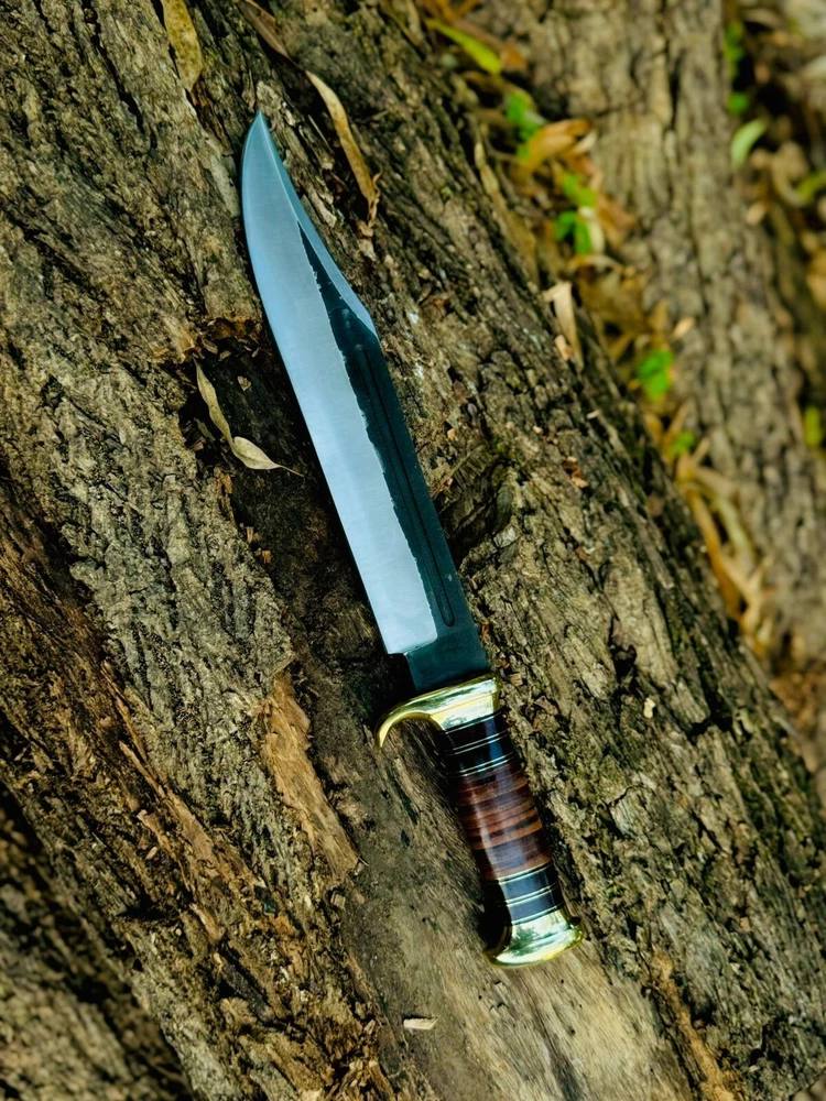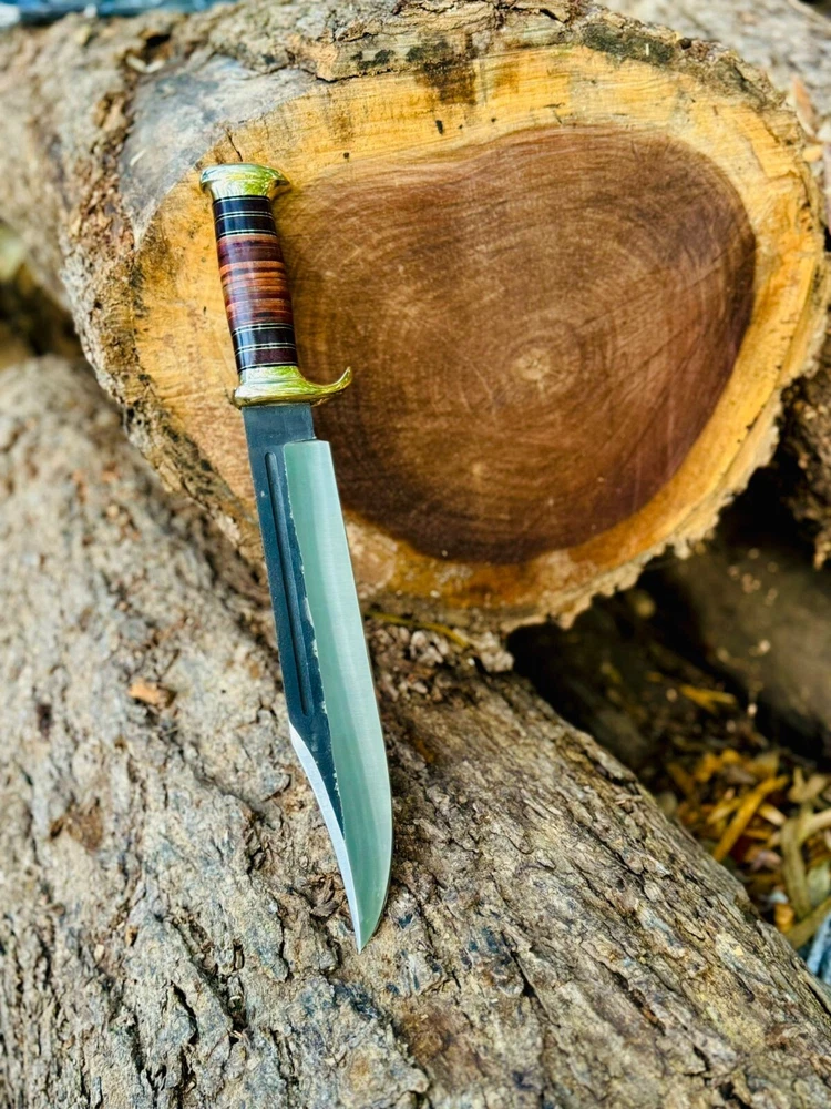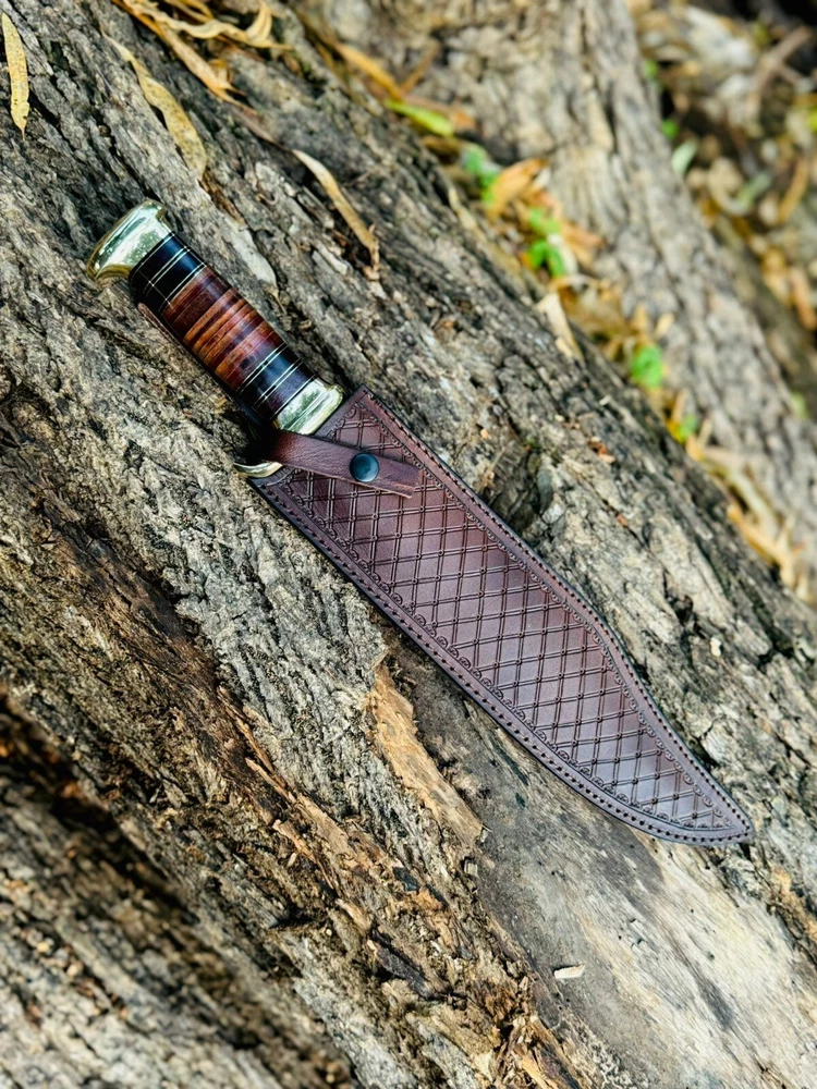 Custom Handmade High Carbon Steel Tactical Bowie Hunting Knife with Leather Sheath