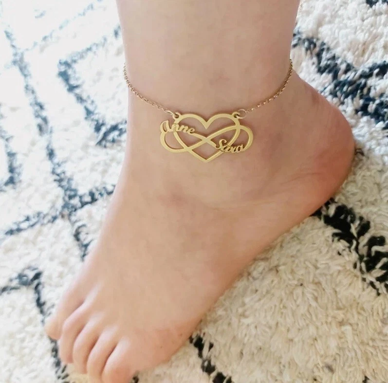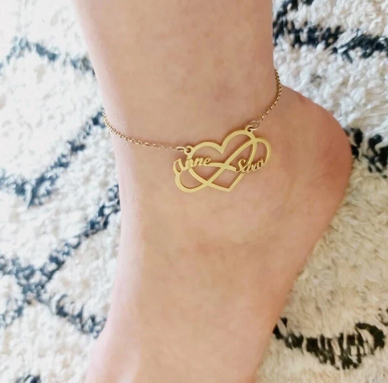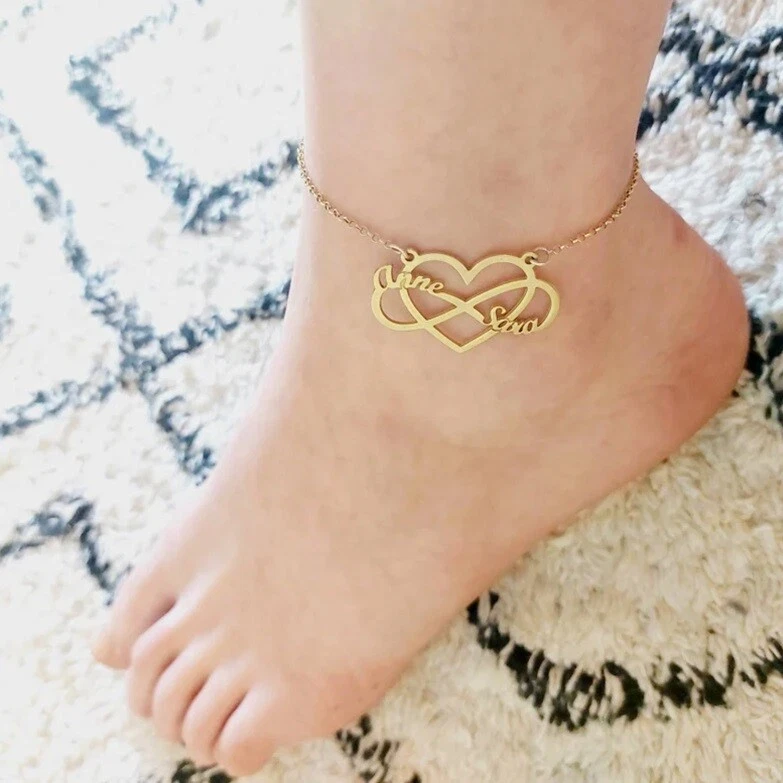 Custom Heart Infinity Name Anklet Personalized Bracelet Nameplate Women Jewelry