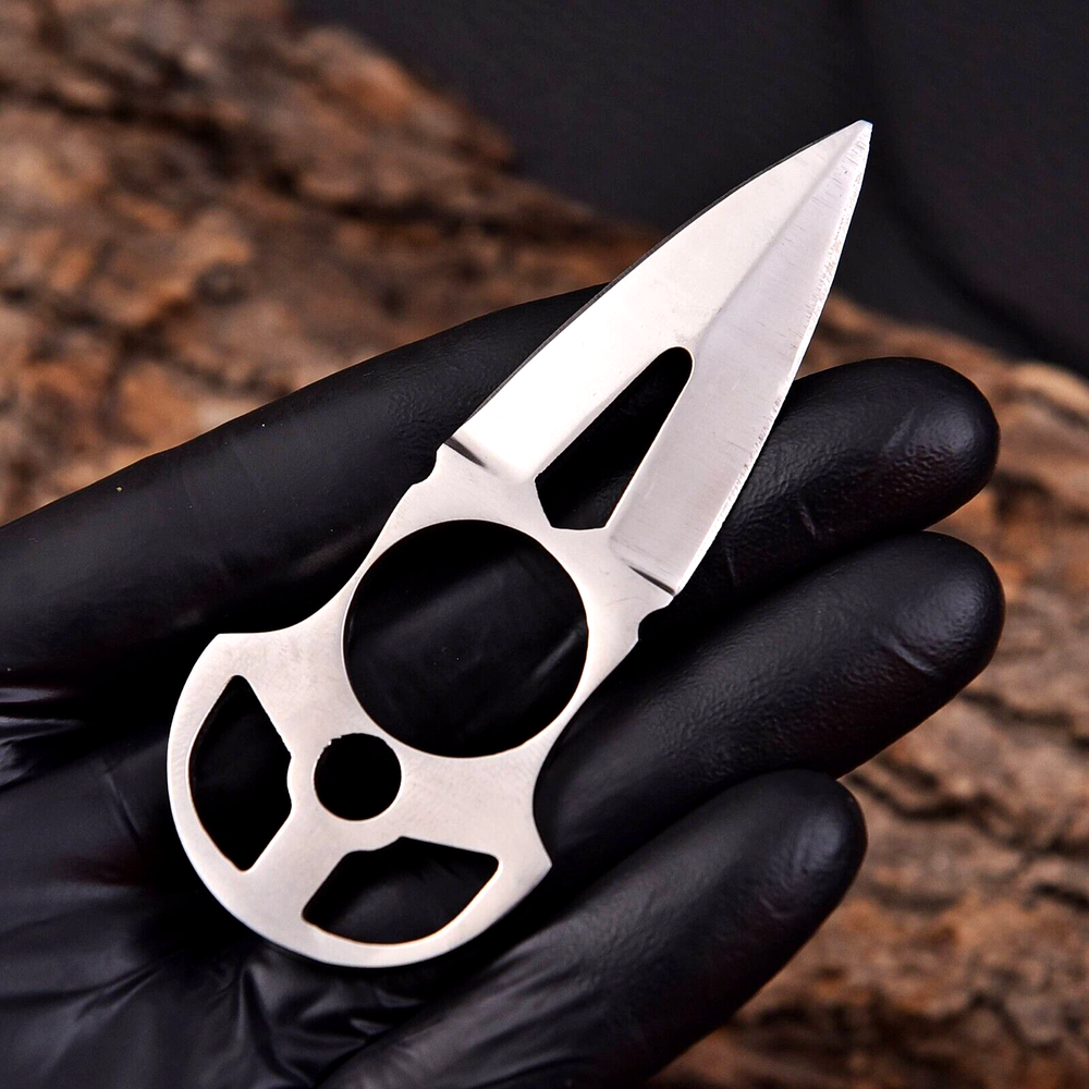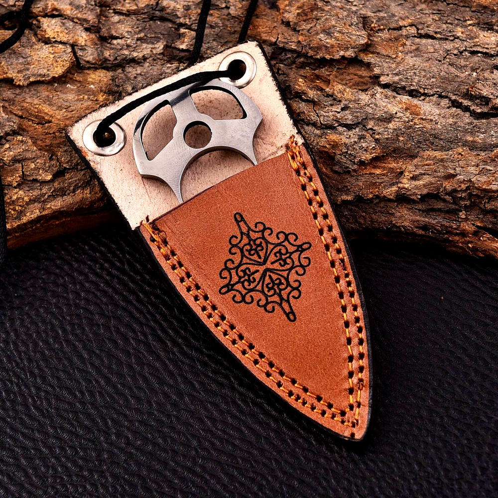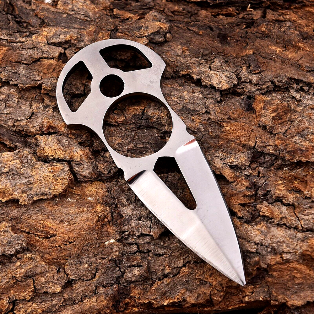 CUSTOM HAND MADE HIGH POLISH CR12 STAINLESS STEEL BLADE EDC NECK KNIFE This superb design knife is hand forged. Blade of this knife has a nice file work. The balance and shape of this knife ensures perfect grip. Overall Length: 3.7” Inches Blade Length: 1.7 ”Inches Handle Length: 2 ”Inches Warning: Keep fingers clear of blades. Store away from children.