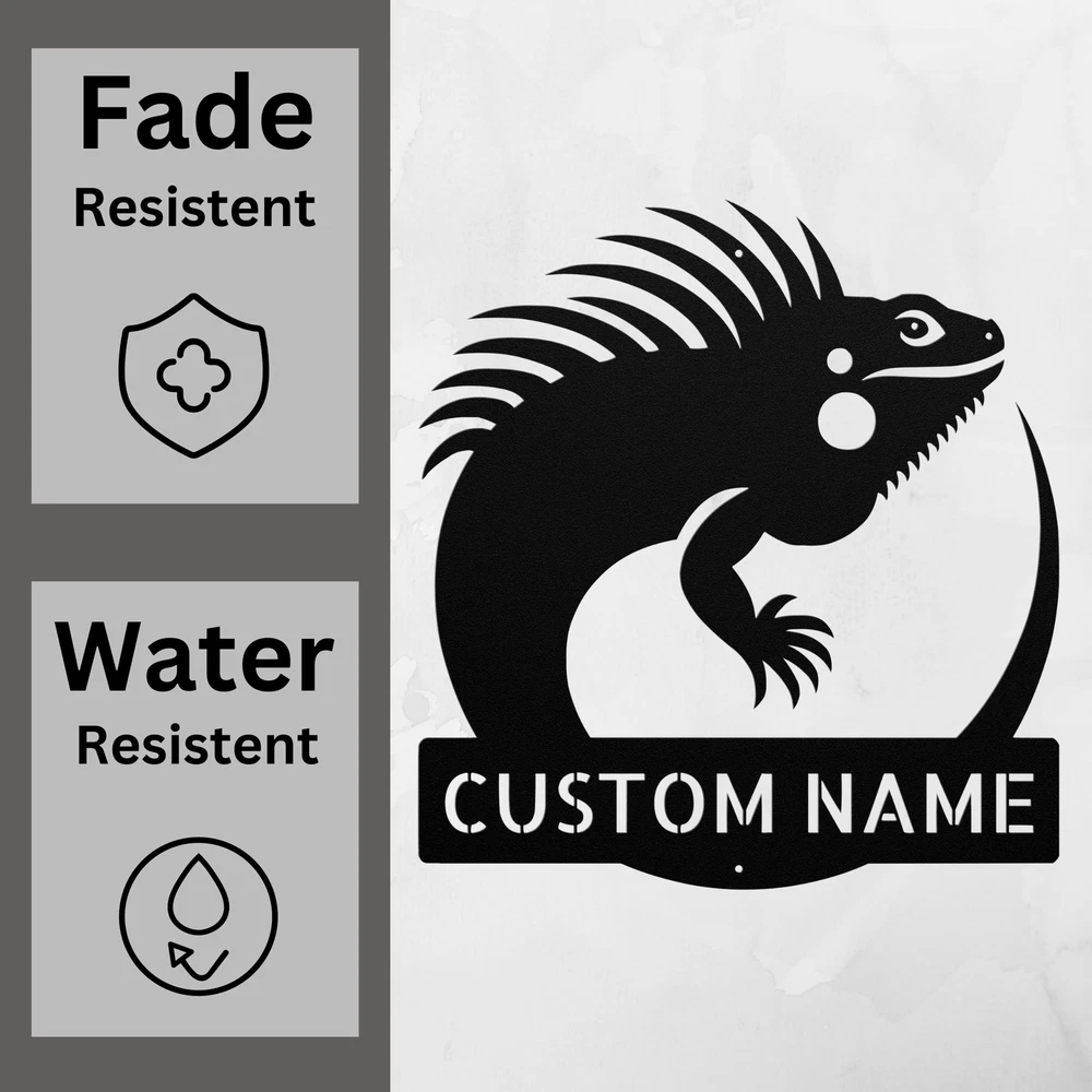 Product Description Custom Iguana Metal Sign Unique Animal Decor Wall Art Gift for Reptile Lovers Show off your love for reptiles with this Custom Iguana Metal Sign ! Made from high-quality 16 gauge metal, this unique animal decor piece adds a distinctive touch to any wall. Its durable powder coating makes it resistant to dust, weather, and water, making it perfect for both indoor and outdoor use. This personalized sign is a fantastic gift for Christmas, birthdays, or any special occasion. Whether you’re a reptile enthusiast or just want to brighten up your home or office decor, this sign is sure to impress. Key Features: Customizable Design : Personalize with names or initials for a special touch. High-Quality Material : Crafted from sturdy 16 gauge metal for long-lasting durability. Weather Resistant : Powder-coated finish protects against dust and moisture. Versatile Decor : Ideal for both indoor and outdoor display. Great Gift Idea : Perfect for reptile lovers or as a unique home decor piece. Celebrate the beauty of iguanas with this eye-catching metal sign. It’s more than just decor; it’s a tribute to your passion for these fascinating creatures. Order yours today! Service and Color Choice Our metal signs are designed to be personalized just for you, making them the perfect addition to any space! The default color for our signs is Black , but we also offer a variety of beautiful options including Copper, Gold, White, and Silver . After placing your order, simply contact us with your preferred color choice, and we'll ensure your sign is exactly how you envision it. Let’s create something special together!