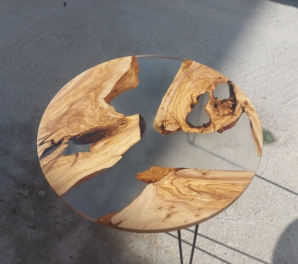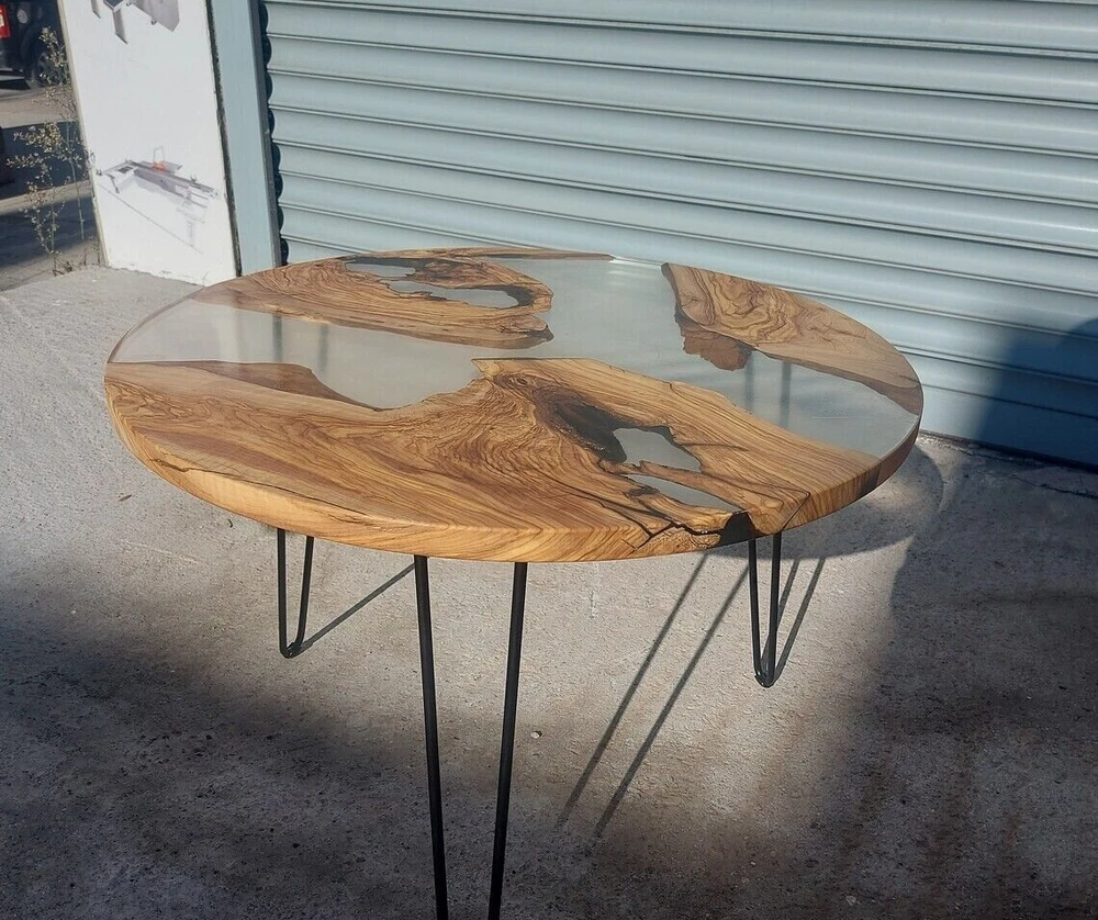Custom Made Clear Epoxy Resin & Live Edge Acacia Wood Coffee Table Top Gifts