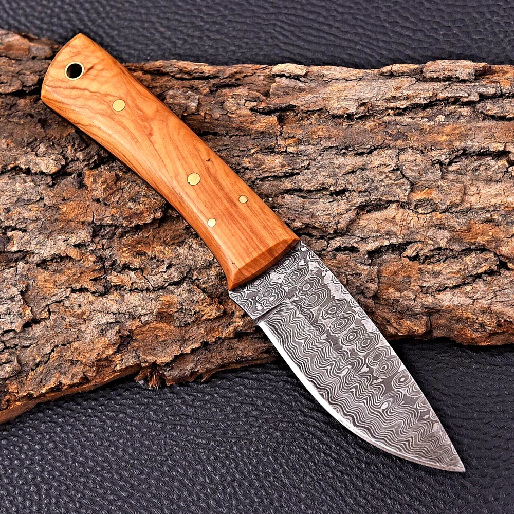 CUSTOM MADE HAND HUNTING CAMPING SURVIVAL KNIFE HAND FORGED DAMASCUS STEEL SKINNER KNIFE Wood Handle This superb design knife is hand forged. Blade of this knife has a nice file work and is made of 512 layers of 4340 stainless steel and 1075 high carbon steel and hardness 55-58 HRC . This robust knife is lab tested under intense conditions, the balance and shape of this knife ensures perfect grip. Overall Length: 7.6" Inches Blade Length: 4" Inches Handle Length: 3.6" Inches Damascus Design: Rain Drop Pattern Layers: 512 Hardness: 55-58 HRC Package Includes: with Leather Sheath Warning: Keep fingers clear of blades. Store away from children.