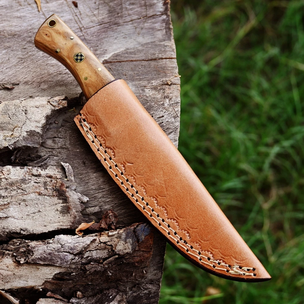 FORGED DAMASCUS STEEL BLADE CUSTOM MADE HAND HUNTING CAMPING SURVIVAL HIKING KNIFE Wood Handle This superb design knife is hand forged. Blade of this knife has a nice file work and is made of 512 layers of 4340 stainless steel and 1075 high carbon steel and hardness 55-58 HRC . This robust knife is lab tested under intense conditions, the balance and shape of this knife ensures perfect grip. Overall Length: 8.6" Inches Blade Length: 4.6" Inches Handle Length: 4" Inches Damascus Design: Rain Drop Pattern Layers: 512 Hardness: 55-58 HRC Package Includes: with Leather Sheath Warning: Keep fingers clear of blades. Store away from children.