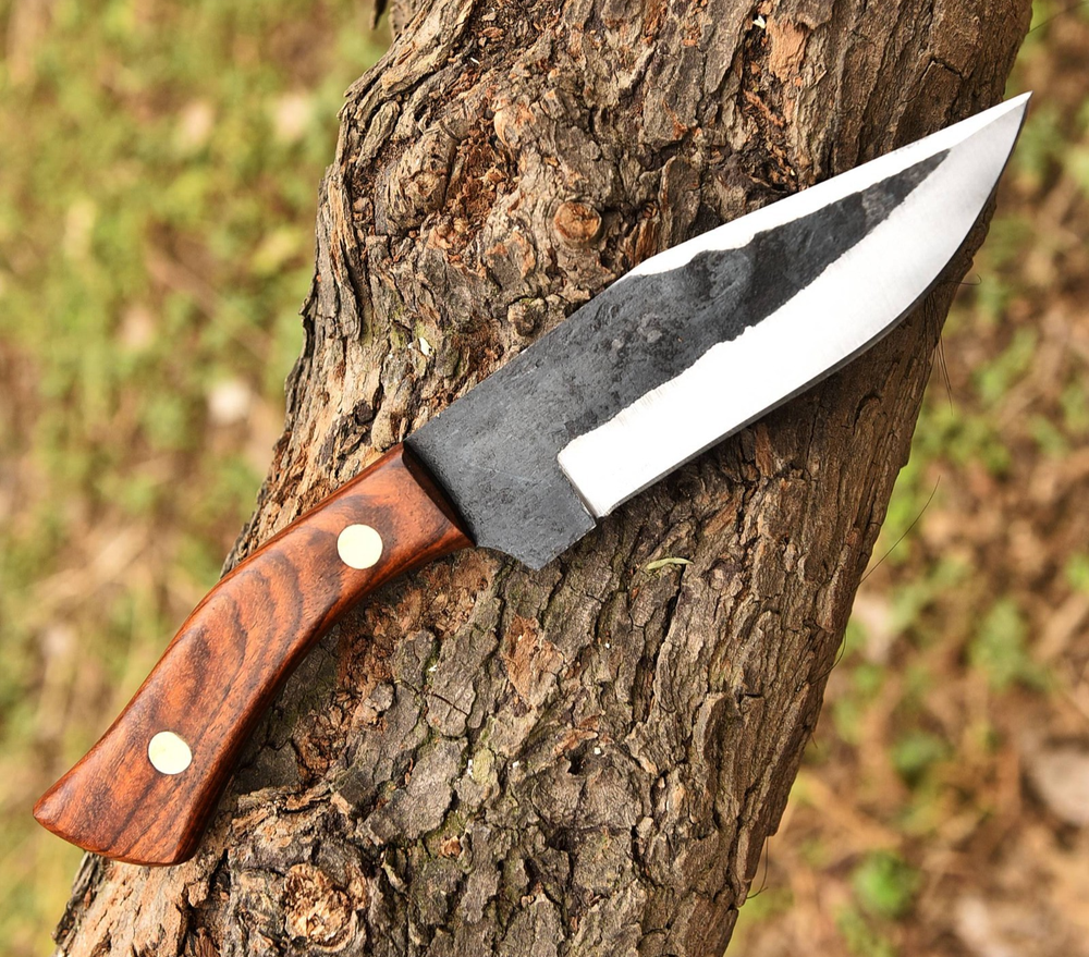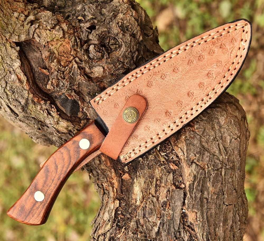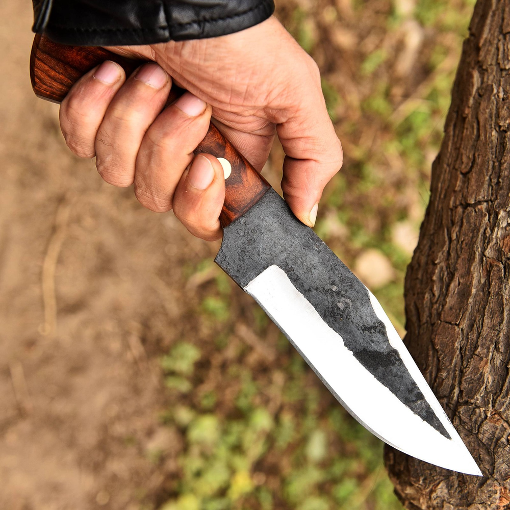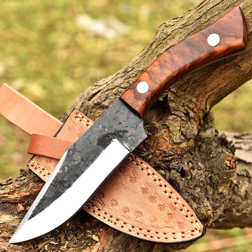 Blade Type: Drop Point Original/Reproduction: Original Tang: Full Country of Origin: United States Blade Length: 6" inches Handmade: Yes Brand: Damascus Blade Material: Carbon Steel Handle Material: Wood Blade Edge: Plain Features: Sheath Included Blade Color: Silver Type: Bowie, Bowie Knife, Everyday Carry, Hunting, Survival, Bushcraft, EDC, Gift, Hand Forged Blade, Hanter, Hiking, Wildlife Dexterity: Ambidextrous Vintage: No