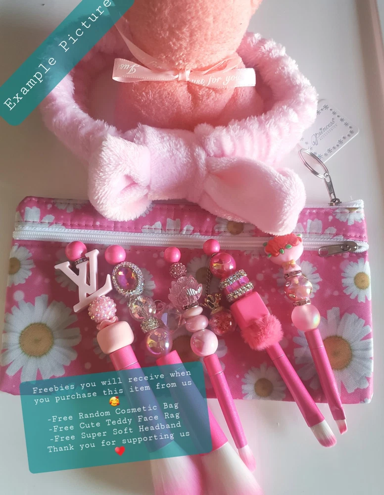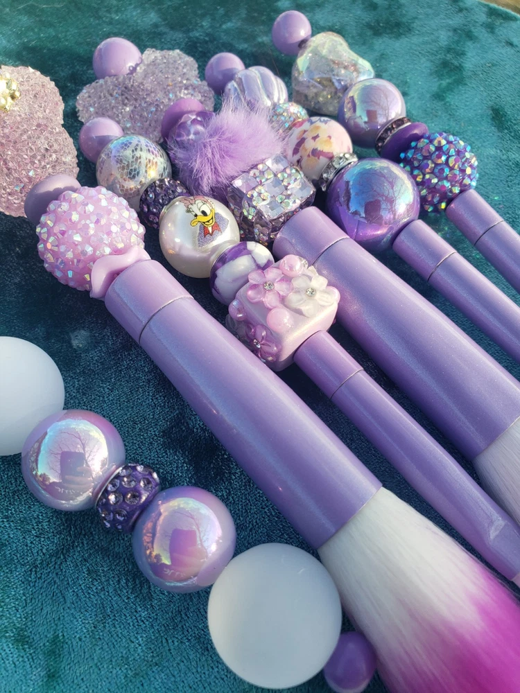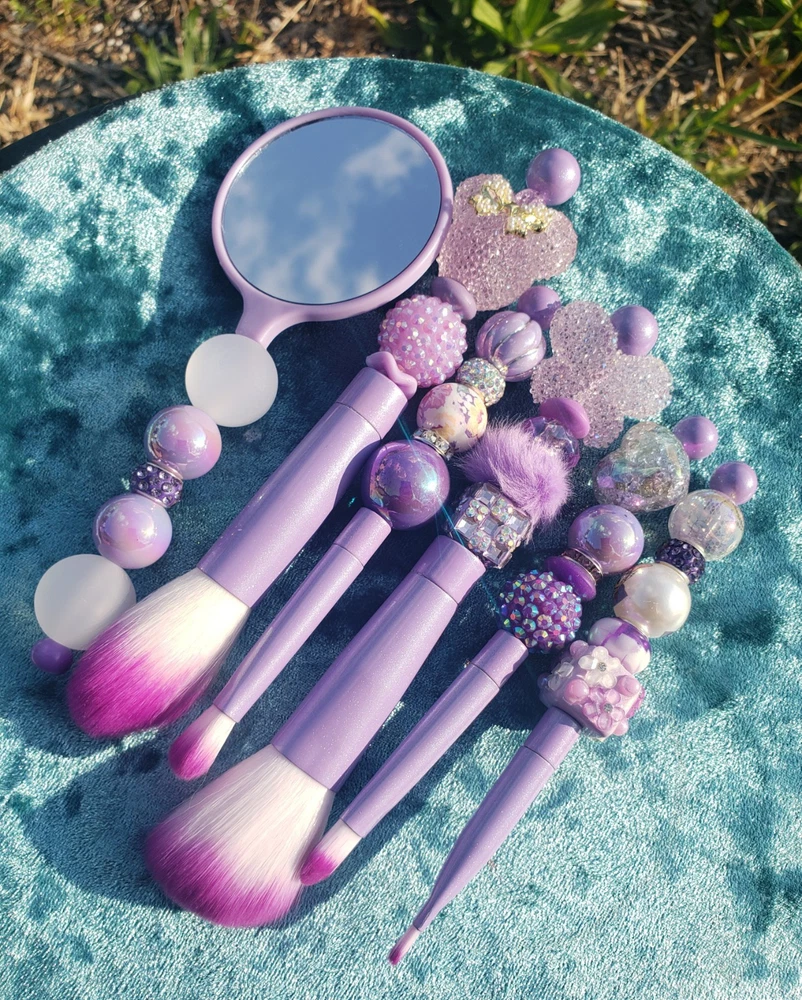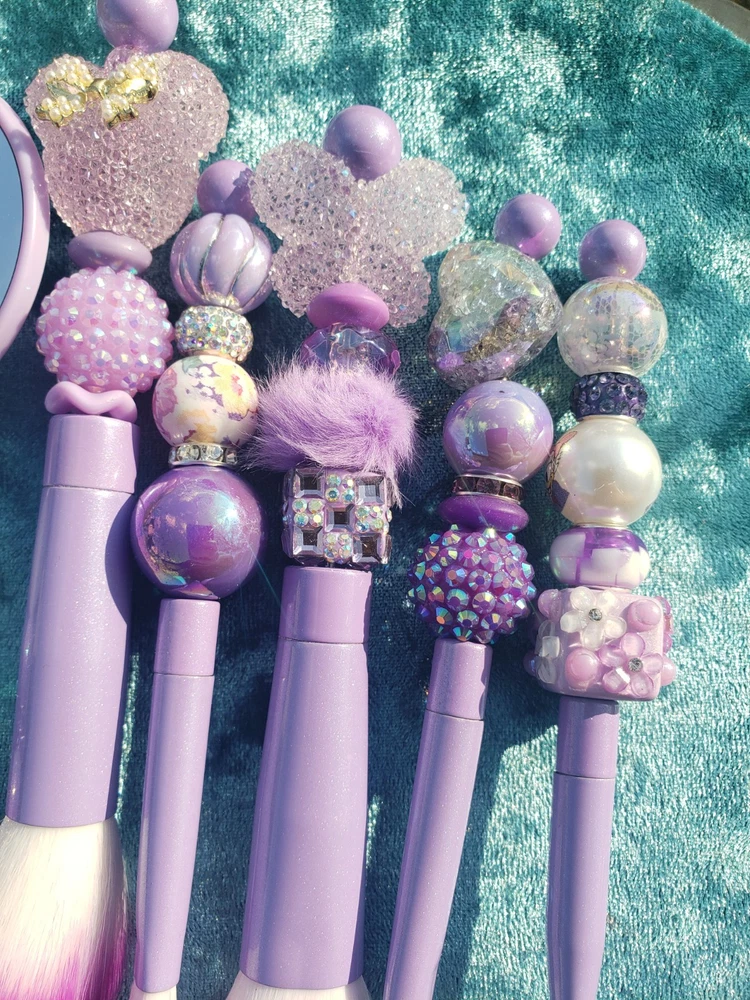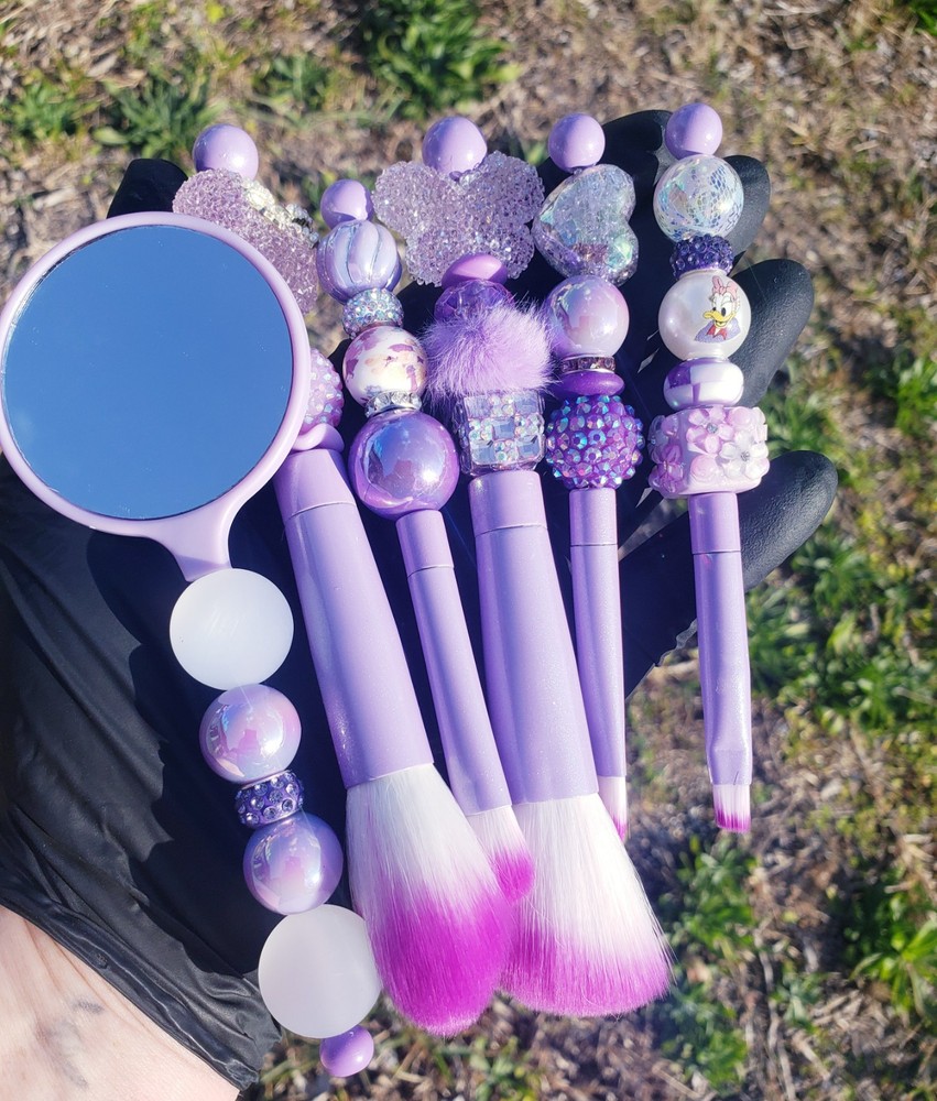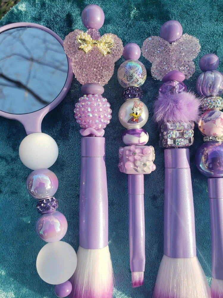 Custom Made Glam Jeweled 9 Pc Make Up Brush Set [Disney Inspired]. Important Note- THE HAND MIRROR WITH THIS LITING IS MISSING SOMEHOW- PROBABLY IN STORAGE. IF REQUESTED I WILL MAKE YOU A NEW/DIFFERENT MIRROR ONLY IF YOU MSG ME FIRST BEFORE. NO NEED TO LEAVE BAD FEEDBACK FOR NOT READING THE DESCRIPTION & DONT RECEIVE ONE!! 🥰 THANK YOU FOR UNDERSTANDING!!!!! These pictures do NO JUSTICE MIRROR IS LOST! Must request a new one (RANDOM MIRROR) before purchasing. A 4 piece make up brush set handmade with the utmost finest and expensive beads. Each brush is fashioned to tell its own story. Completed with durable jewels that have been meticulously tested and, of course made with love to last forever. Good luck NOT feeling glamorous after using these. ;) These are one of a kind , custom brushes. There are no duplicates. CHECK OUT MY OTHER BRUSHES ON MY PAGE. SEND AN OFFER ♡ *ALL BRUSHES COME WITH HEADBAND,FACE RAG AND MAKEUP BAG READ MY BIO B4 ORDERING PLEASE