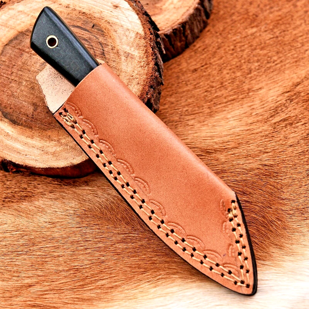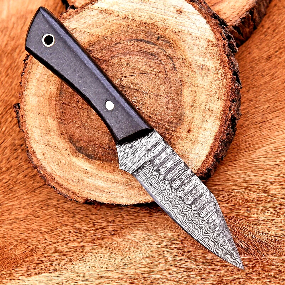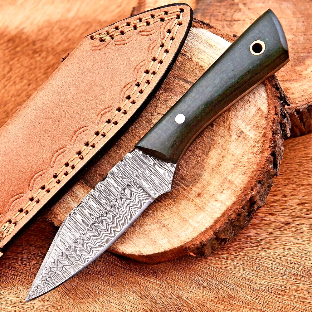 CUSTOM MADE HAND FORGED DAMASCUS STEEL BLADE HUNTING CAMPING SURVIVAL KNIFE Micarta Handle This superb design knife is hand forged. Blade of this knife has a nice file work and is made of 512 layers of 4340 stainless steel and 1075 high carbon steel and hardness 55-58 HRC . This robust knife is lab tested under intense conditions, the balance and shape of this knife ensures perfect grip. Overall Length: 7" Inches Blade Length: 3.6" Inches Handle Length: 3.6" Inches Damascus Design: Rain Drop Pattern Layers: 512 Package Includes: with Leather Sheath Warning: Keep fingers clear of blades. Store away from children.