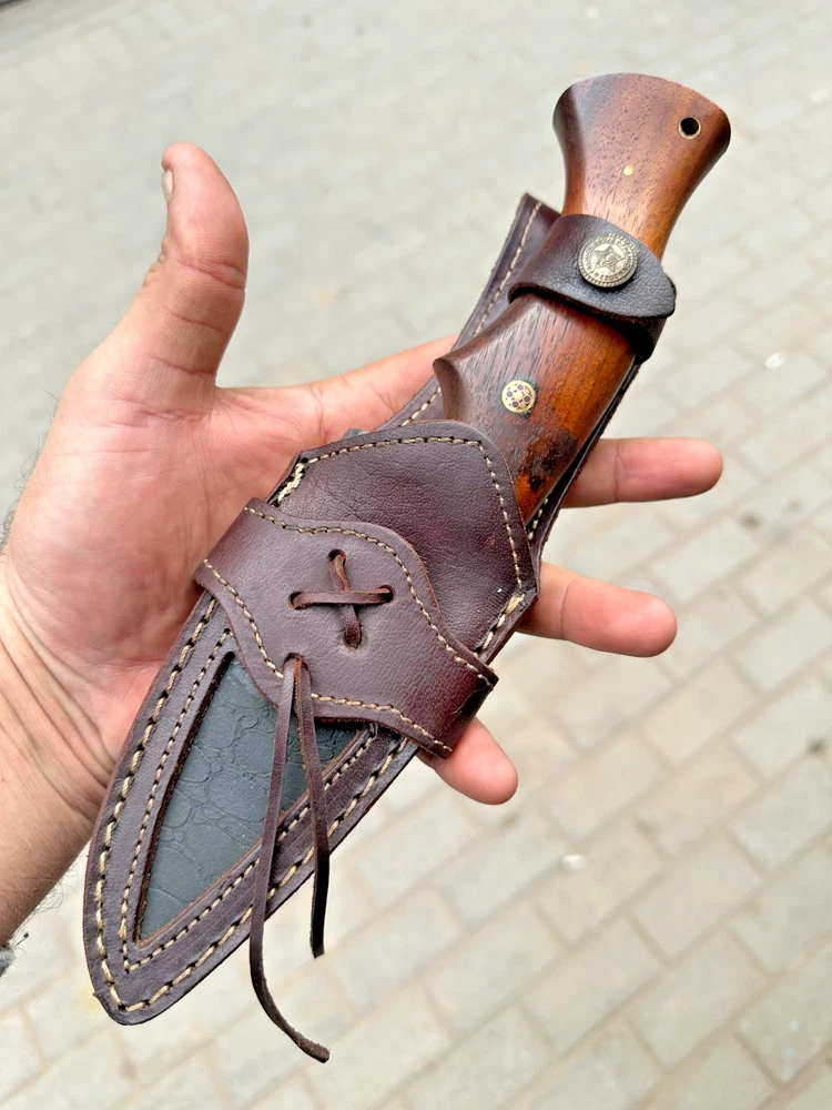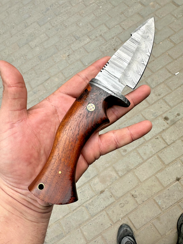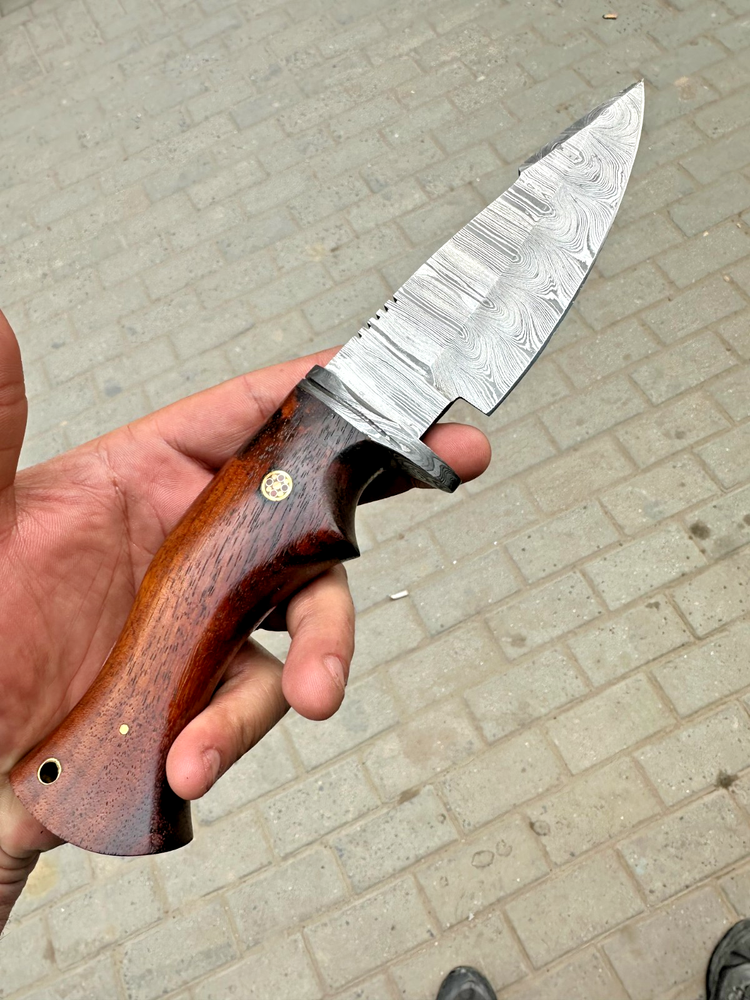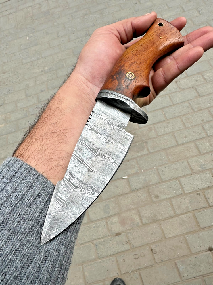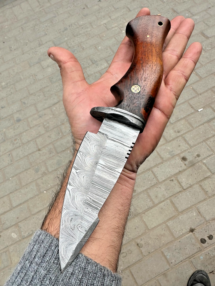CUSTOM HAND MADE HAND FORGED DAMASCUS STEEL BLADE HUNTING KNIFE Wood Handle This superb design knife is hand forged. Blade of this knife has a nice file work and is made of 512 layers of 4340 stainless steel and 1075 high carbon steel and hardness 55-58 HRC . This robust knife is lab tested under intense conditions, the balance and shape of this knife ensures perfect grip. Overall Length: 9.5" Inches Blade Length: 5" Inches Handle Length: 4.5" Inches Damascus Design: Twist Pattern Layers: 512 Hardness: 55-58 HRC Package Includes: with Leather Sheath Warning: Keep fingers clear of blades. Store away from children.
