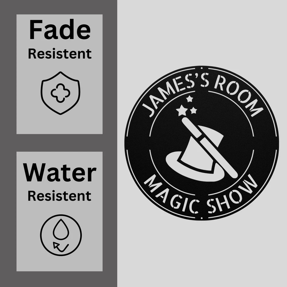 Product Description Custom Magician Hat Metal Sign Personalized Magic Decor for Home or Office Add a touch of magic to your space with our Custom Magician Hat Metal Sign . This enchanting sign is made from high-quality 16 gauge metal, ensuring durability and longevity. With a powder-coated finish, it is resistant to dust, weather, and moisture, making it perfect for indoor or outdoor display. Personalize this sign with your name, a magical phrase, or a special message to make it truly unique. Whether you’re a magician, magic enthusiast, or just love the whimsical charm of a magician’s hat, this sign is an excellent addition to your home or office decor. This Custom Magician Hat Metal Sign makes for a great gift for birthdays, Christmas, or any special occasion. It’s perfect for anyone who appreciates the art of magic and wants to showcase their passion in a fun and creative way. Key Features: Personalized Touch: Customize with your name or a special message for a unique look. High-Quality Material: Crafted from 16 gauge metal for strength and durability. Weather-Resistant: Powder coating protects the sign from dust and moisture. Versatile Decoration: Ideal for home, office, magic shows, or as a conversation piece. Perfect Gift Idea: Great for birthdays, Christmas, or for any magic lover. Make your space come alive with the wonder of magic through the Custom Magician Hat Metal Sign ! Service and Color Choice Our metal signs are designed to be personalized just for you, making them the perfect addition to any space! The default color for our signs is Black , but we also offer a variety of beautiful options including Copper, Gold, White, and Silver . After placing your order, simply contact us with your preferred color choice, and we'll ensure your sign is exactly how you envision it. Let’s create something special together!