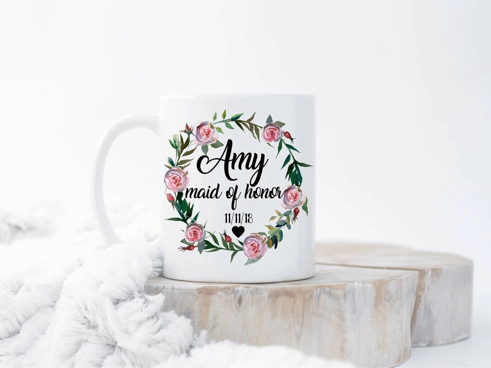 Custom Maid Of Honor Mug Bridal Party Gifts Maid Of Honor Gift Bridesmaid Product Details.. This high quality 11oz. ceramic white mug has a premium hard coat that provides crisp and vibrant color reproduction sure to last for years. Perfect for all hot & cold beverages. The highest quality printing possible is used. It will never fade no matter how many times you wash it. Material: 100% Ceramic. Print both sides. Dishwasher and Microwave Safe. High Gloss + Premium White Finish. Printed in the U.S.A. Personalized & Custom. We support personalized and custom mug to add custom, when placing an order, you can add notes to the "order note" in shipping address section. Also you can contact us directly via message. Shipping Info. Ready to ship in 1 to 2 business days, All products are made-to-order and proudly printed in the United States. Shipped by USPS and DHL, You will receive your order in 5-7 days. Replace & Refund. All products are defective during shipping broken, chipped will be replaced free of charge. You are not satisfied with the product, we will refund 100% money to you. If any other issues arise, please do not hesitate to message, we would be more than happy to assist you.
