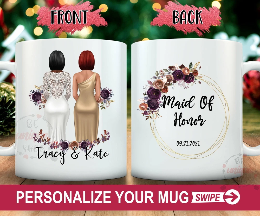 Custom Matron Of Honor Mug Will You Be My Maid Of Honor Mug Bridesmaid Proposal Product Details.. This high quality 11oz. ceramic white mug has a premium hard coat that provides crisp and vibrant color reproduction sure to last for years. Perfect for all hot & cold beverages. The highest quality printing possible is used. It will never fade no matter how many times you wash it. Material: 100% Ceramic. Print both sides. Dishwasher and Microwave Safe. High Gloss + Premium White Finish. Printed in the U.S.A. Personalized & Custom. We support personalized and custom mug to add custom, when placing an order, you can add notes to the "order note" in shipping address section. Also you can contact us directly via message. Shipping Info. Ready to ship in 1 to 2 business days, All products are made-to-order and proudly printed in the United States. Shipped by USPS and DHL, You will receive your order in 5-7 days. Replace & Refund. All products are defective during shipping broken, chipped will be replaced free of charge. You are not satisfied with the product, we will refund 100% money to you. If any other issues arise, please do not hesitate to message, we would be more than happy to assist you.