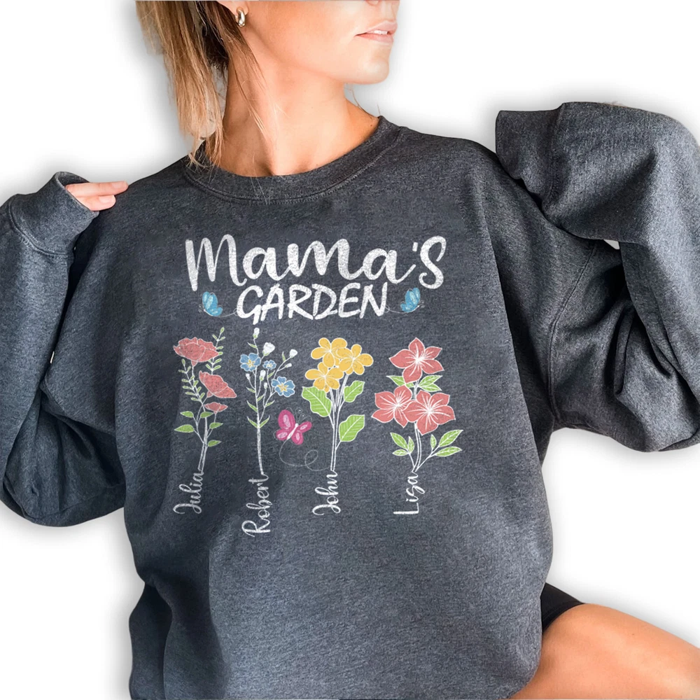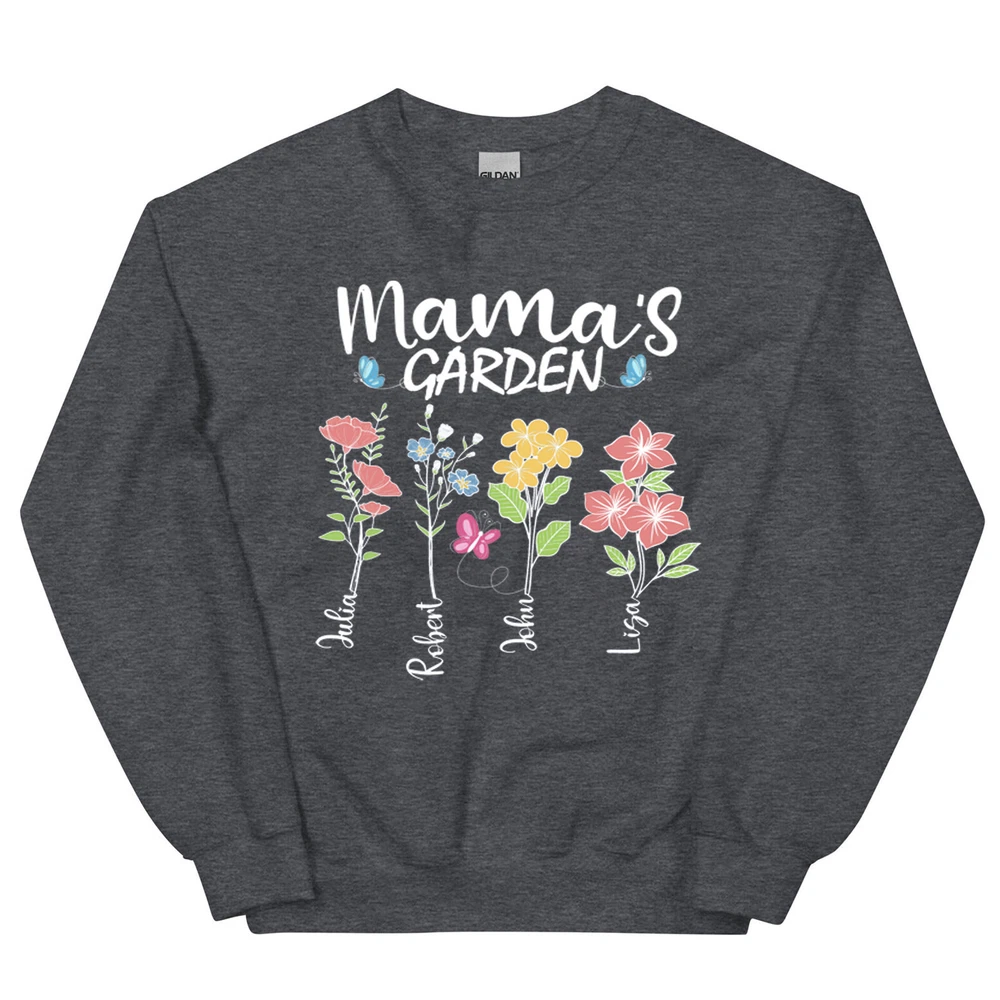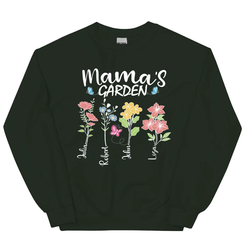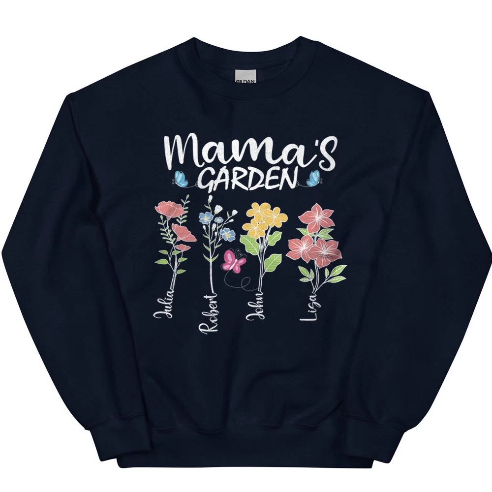 Custom Mothers Day Sweatshirt - Personalized Mom Gift Mama's Garden Graphic Shirt This custom sweatshirt is the perfect personalized Mother's Day gift for the special mom in your life. The design features a lovely graphic of a garden with the text "Mama's Garden" to celebrate and honor the nurturing role of motherhood. Made with high-quality materials, this sweatshirt is both comfortable and stylish, perfect for everyday wear. The customization option allows you to add a personal touch by including the name or message of your choice. Give the gift of warmth, love, and appreciation this Mother's Day with this unique and thoughtful sweatshirt. A sturdy and warm sweatshirt bound to keep you warm in the colder months. A pre-shrunk, classic fit sweater that's made with air-jet spun yarn for a soft feel and reduced pilling. • 50% cotton, 50% polyester • Pre-shrunk • Classic fit • 1x1 athletic rib knit collar with spandex • Air-jet spun yarn with a soft feel and reduced pilling • Double-needle stitched collar, shoulders, armholes, cuffs, and hem PAYMENT We accept credit, debit, and gift cards; Apple Pay, Google Pay, PayPal, and PayPal Credit. CONTACT US This page content is yet to come Please ad us to your favorite seller and visit again later Thank You CUSTOMER SATISFACTION We try our very best to make sure every customer is completely satisfied. If there's a problem, message us! We're happy to help NOTICE Wrongly ordered sizes won't be eligible for refunds . We make everything on demand, so requesting a size exchange would mean producing an entirely new product.