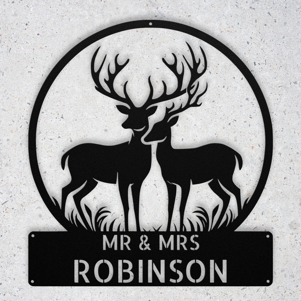 Product Description Custom Mr Mrs Deer Metal Sign Personalized Family Last Name Home Decor Art Add a rustic touch to your home with this Custom Mr. & Mrs. Deer Metal Sign ! Made from high-quality 16 gauge metal, this personalized sign is designed for both style and durability. The powder coating provides excellent protection against dust, weather, and moisture, making it suitable for indoor and outdoor use. This custom metal sign is a perfect gift for Christmas, birthdays, or any special occasion. Personalize it with your family last name for a unique piece that reflects your love for nature and family. Whether you hang it in your living room, entryway, or on your porch, this sign will make a charming statement. Key Features: Customizable Design: Personalize with your family last name for a unique touch. Durable Material: Crafted from sturdy 16 gauge metal for long-lasting appeal. Weather Resistant: The powder-coated finish protects against dust, moisture, and outdoor elements. Versatile Decor: Ideal for indoor or outdoor use, enhancing any space. Great Gift Choice: A thoughtful present for Christmas, weddings, or other special occasions. Charming Design: Features a lovely deer motif, perfect for nature lovers and families. Bring warmth and personality to your decor with this Custom Mr. & Mrs. Deer Metal Sign! Service and Color Choice Our metal signs are designed to be personalized just for you, making them the perfect addition to any space! The default color for our signs is Black , but we also offer a variety of beautiful options including Copper, Gold, White, and Silver . After placing your order, simply contact us with your preferred color choice, and we'll ensure your sign is exactly how you envision it. Let’s create something special together!