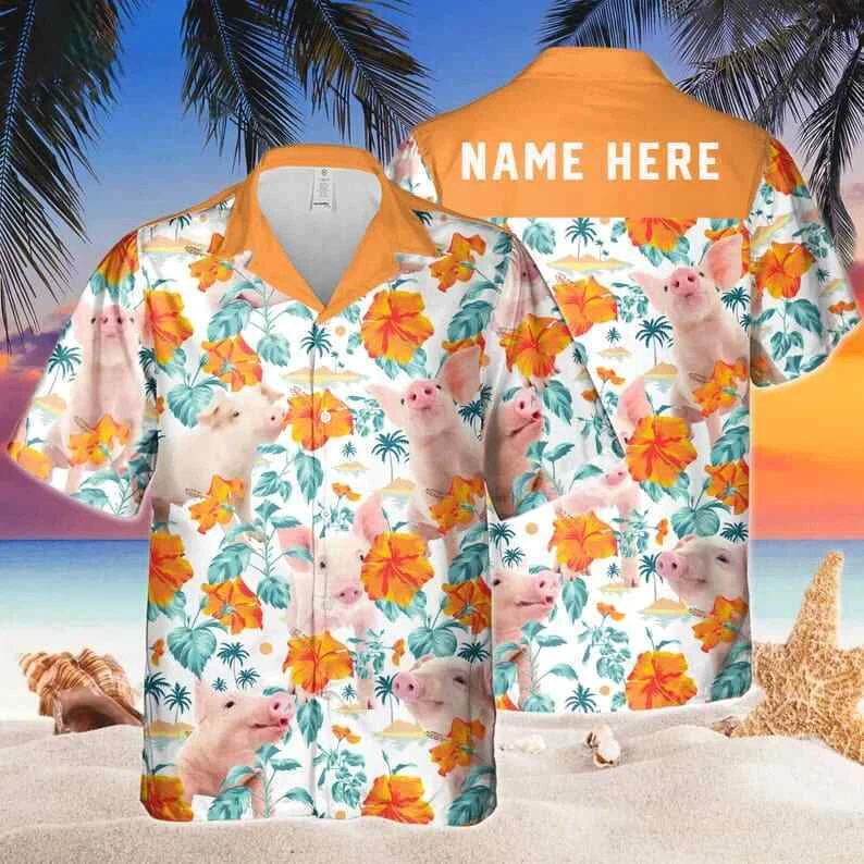 Custom Name Funny Pig Hibiscus Flowers All 3D Printed Trendy Hawaiian Shirt