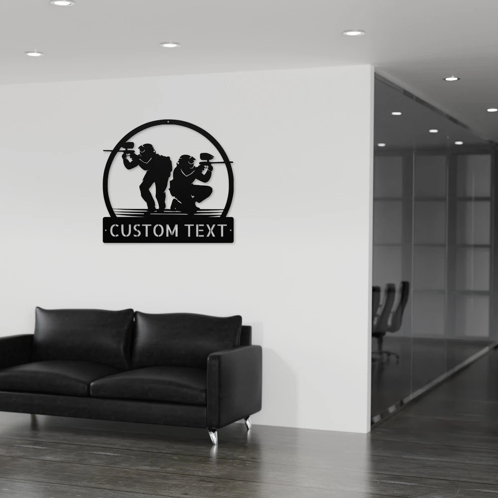 Product Description Custom Paintball Metal Sign - Unique Decor for Paintball Lovers Get ready to showcase your passion for paintball with our Custom Paintball Metal Sign ! Crafted from high-quality 16 gauge metal, this sign is built to withstand the test of time. The durable powder coating makes it dust, weather, and water-resistant, perfect for both indoor and outdoor use. You can personalize this sign with your name, team name, or a fun phrase, making it a great addition to your game room, garage, or any space where you want to display your love for the sport. This custom sign also makes a thoughtful gift for birthdays, Christmas, or any special occasion for paintball enthusiasts of all ages. Whether you’re decorating your home, office, or a paintball field, this sign is sure to catch the eye and spark conversations! Key Features: Customizable: Add your name, team name, or a special message. Durable Material: Made from sturdy 16 gauge metal for lasting quality. Weather Resistant: Powder-coated finish protects against dust and moisture. Versatile Decor: Perfect for homes, offices, garages, or game rooms. Great Gift Idea: Ideal for birthdays, Christmas, or special occasions. Elevate your decor and celebrate your love for paintball with the Custom Paintball Metal Sign today! Service and Color Choice Our metal signs are designed to be personalized just for you, making them the perfect addition to any space! The default color for our signs is Black , but we also offer a variety of beautiful options including Copper, Gold, White, and Silver . After placing your order, simply contact us with your preferred color choice, and we'll ensure your sign is exactly how you envision it. Let’s create something special together!