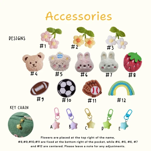 🎒 Personalized Kids Backpack – Custom Name School Bag for Boys & Girls | Perfect for Preschool, Kindergarten, Daycare & Gifts 🎁 Make this school year extra special with our ✨ Personalized Kids Backpack ✨ – a fun, stylish, and functional bag designed just for your little one! Perfect for preschoolers, kindergarteners, and young students , this custom backpack blends personality, comfort, and everyday practicality. 🧸 How to Personalize: 1️⃣ Choose your favorite backpack color 🎨 2️⃣ Pick a cute design that fits your child’s style 🖼️ 3️⃣ Add your child’s name (max 8 letters) and select a yarn color for the perfect final touch 💖 ⚠️ Limiting the name to 8 letters helps keep the embroidery neat, clear, and beautiful! 🌟 Why You’ll Love It: 💼 High-Quality & Comfortable ✔️ Size: 16" x 11" x 5" – spacious yet lightweight for daily use ✔️ Made from soft, durable corduroy that’s gentle on small shoulders 🐻 ✔️ Adjustable straps ensure a perfect fit as your child grows 🎉 Great for All Occasions 🎒 Ideal for school, daycare, family outings , or as a unique birthday gift 👪 Parents can also use it as a stylish caregiver bag for essentials on the go 🧼 Easy Care Instructions 🖐️ Recommended: Hand wash and air dry for best results 🧺 For machine wash: Use cold water on delicate cycle , then lay flat to dry 💖 Whether you're prepping for a new school year or looking for a one-of-a-kind gift, our custom name backpack is the perfect choice to make your child smile every day! 😍 👉 Order now to create a backpack as unique and special as your little one! 🌈