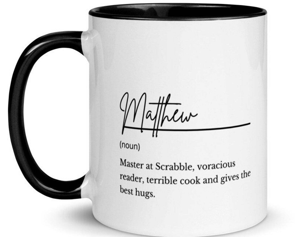 Personalized Name Mug Custom Definition Custom Name Mug Customizable Mug Product Details.. This high quality 11oz. ceramic white mug has a premium hard coat that provides crisp and vibrant color reproduction sure to last for years. Perfect for all hot & cold beverages. The highest quality printing possible is used. It will never fade no matter how many times you wash it. Material: 100% Ceramic. Print both sides. Dishwasher and Microwave Safe. High Gloss + Premium White Finish. Printed in the U.S.A. Personalized & Custom. We support personalized and custom mug to add custom, when placing an order, you can add notes to the "order note" in shipping address section. Also you can contact us directly via message. Shipping Info. Ready to ship in 1 to 2 business days, All products are made-to-order and proudly printed in the United States. Shipped by USPS and DHL, You will receive your order in 5-7 days. Replace & Refund. All products are defective during shipping broken, chipped will be replaced free of charge. You are not satisfied with the product, we will refund 100% money to you. If any other issues arise, please do not hesitate to message, we would be more than happy to assist you.