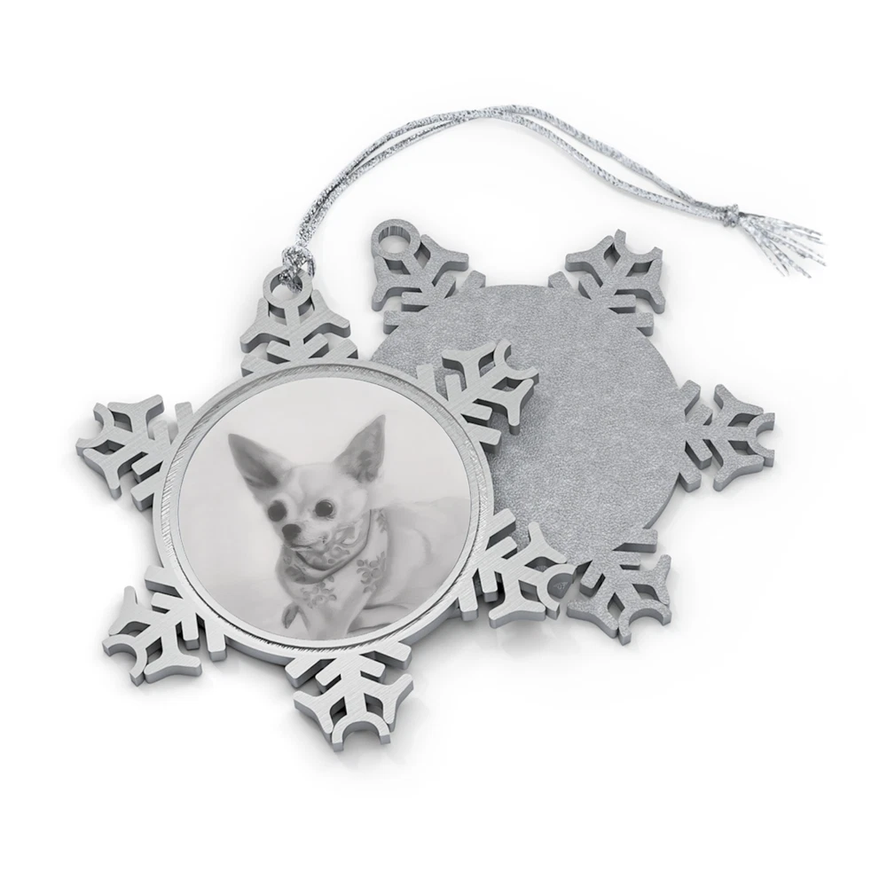 Custom Pet Portrait Pewter Snowflake Ornament - Tucker