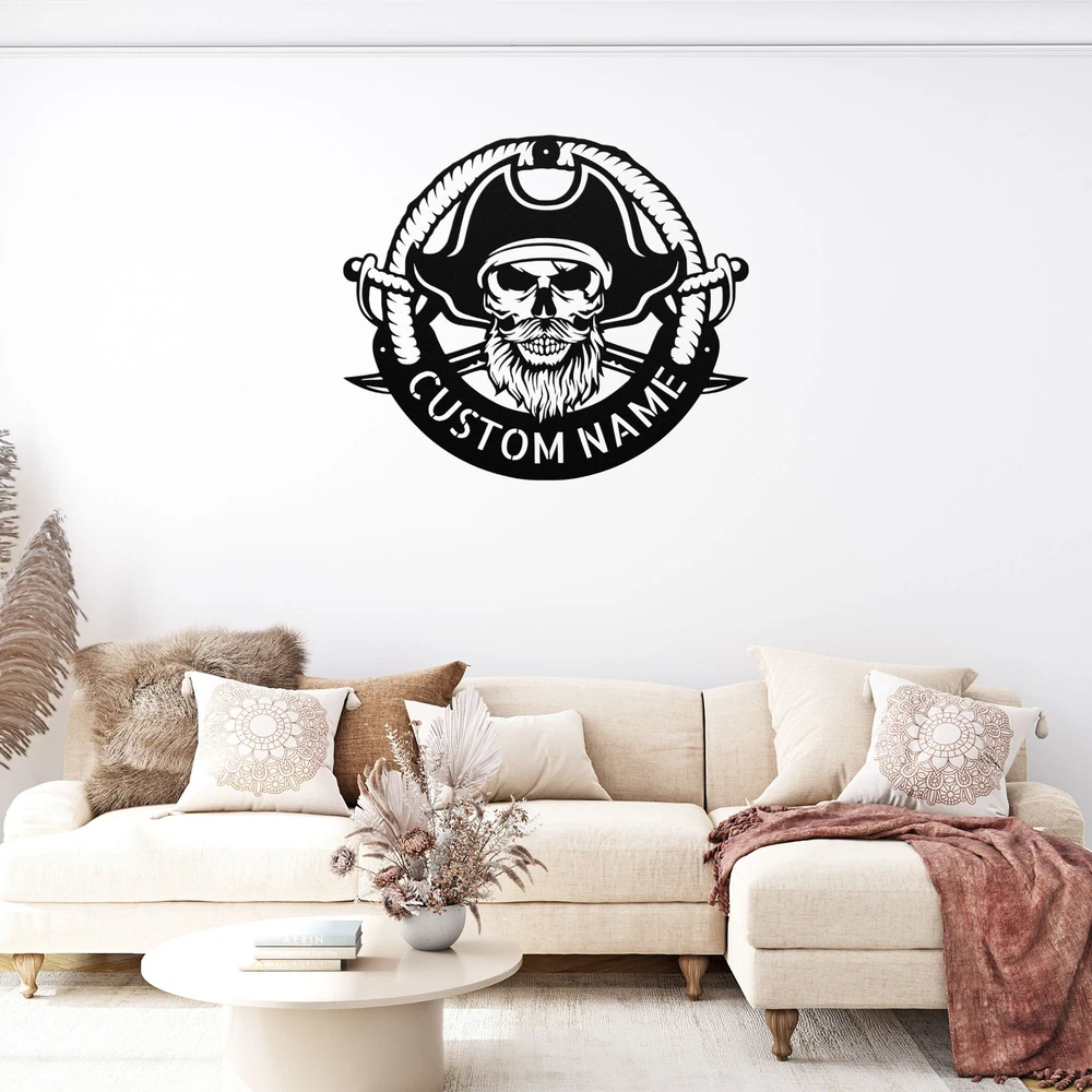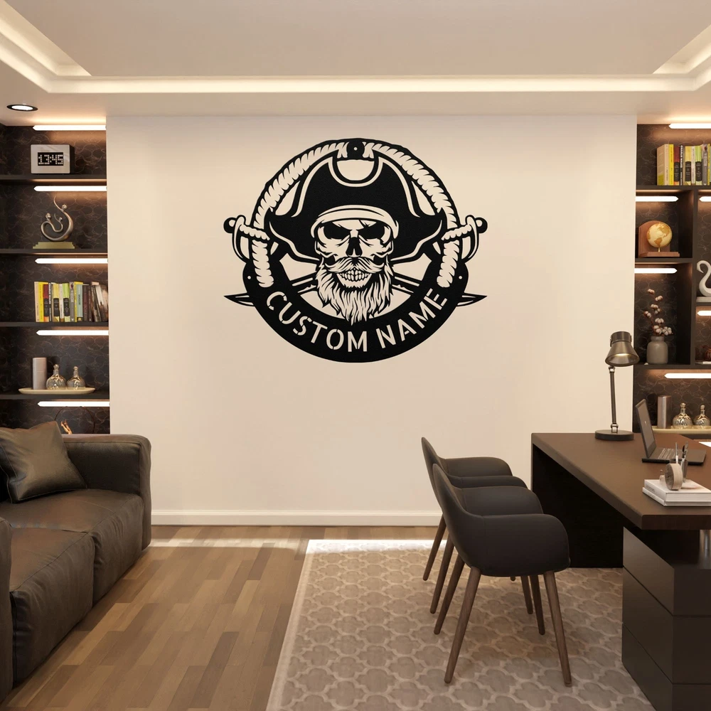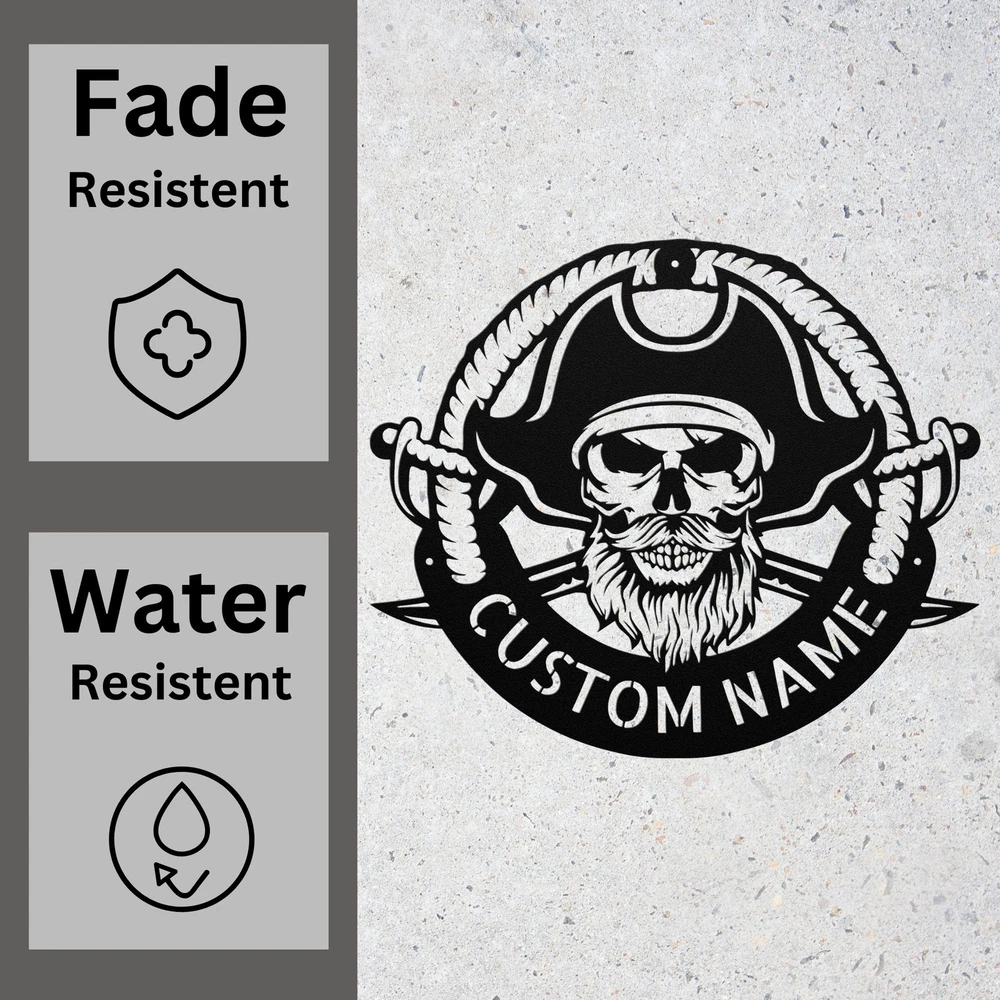 Product Description Custom Pirate Metal Sign Gift for Pirate Lovers Decor for Home, Bar, or Man Cave Set sail on a journey of adventure with this Custom Pirate Metal Sign , the perfect way to add a touch of swashbuckling charm to your home, bar, or man cave . Crafted from high-quality 16-gauge laser-cut metal , this durable sign is finished with a powder-coated layer , ensuring it remains vibrant and weather-resistant for years to come, whether displayed indoors or outdoors. This personalized pirate sign offers the opportunity to add your name, special message, or custom text , making it a unique and meaningful addition to your space. It’s a fantastic way to celebrate your love for pirates, nautical themes, and the thrill of the sea. Looking for a unique gift for a pirate lover, nautical enthusiast, or adventure seeker? This custom pirate metal sign makes the perfect gift for birthdays, Christmas, or any special occasion . Whether you’re commemorating a nautical adventure or simply embracing pirate culture, this sign will be treasured for years to come. Key Features: Premium Quality: Made from sturdy 16-gauge laser-cut metal Durable Finish: Powder-coated for long-lasting resistance to rust and wear Customizable Design: Add a name, special message, or custom text for a personal touch Nautical-Inspired Decor: Perfect for bars, man caves, homes, or nautical spaces Great Gift Idea: Ideal for pirate lovers, nautical fans, and adventure seekers Order your Custom Pirate Metal Sign today and infuse your space with the daring spirit of the high seas, or surprise someone special with a personalized gift that celebrates their love for pirate lore and nautical adventure! Service and Color Choice Our metal signs are designed to be personalized just for you, making them the perfect addition to any space! The default color for our signs is Black , but we also offer a variety of beautiful options including Copper, Gold, White, and Silver . After placing your order, simply contact us with your preferred color choice, and we'll ensure your sign is exactly how you envision it. Let’s create something special together!