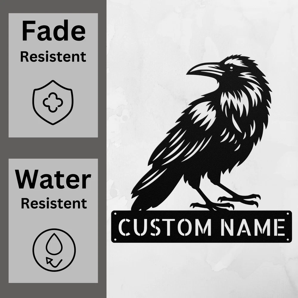 Product Description Custom Raven Bird Metal Sign Unique Decor Wall Art Gift for Bird Lovers Elevate your space with this Custom Raven Bird Metal Sign ! Made from high-quality 16 gauge metal, this unique decor piece is perfect for bird lovers and adds a striking touch to any wall. With its durable powder coating, this sign is resistant to dust, weather, and water, making it suitable for both indoor and outdoor use. This personalized sign makes a fantastic gift for Christmas, birthdays, or any special occasion. Whether you’re looking to celebrate a love for ravens or simply want to enhance your home or office decor, this piece is sure to impress. Key Features: Customizable Design : Personalize with names or initials for a unique touch. High-Quality Material : Crafted from sturdy 16 gauge metal for long-lasting durability. Weather Resistant : Powder-coated finish protects against dust and moisture. Versatile Decor : Perfect for indoor and outdoor display. Great Gift Idea : Ideal for bird lovers or as a one-of-a-kind home decor piece. Bring a touch of nature into your life with this eye-catching raven metal sign. It’s not just decor; it’s a celebration of the beauty and mystery of birds. Order yours today! Service and Color Choice Our metal signs are designed to be personalized just for you, making them the perfect addition to any space! The default color for our signs is Black , but we also offer a variety of beautiful options including Copper, Gold, White, and Silver . After placing your order, simply contact us with your preferred color choice, and we'll ensure your sign is exactly how you envision it. Let’s create something special together!
