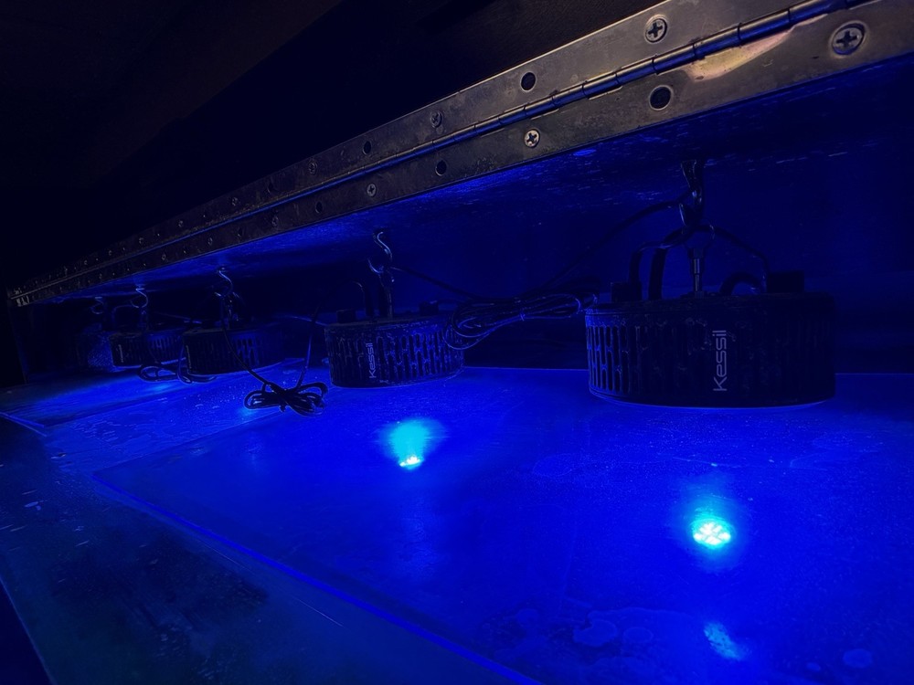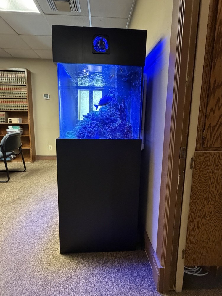 Custom 150-Gallon Reef Aquarium System For sale is a custom-built 150-gallon acrylic reef aquarium system. The tank sits on a sturdy black Formica stand with a matching canopy. The system includes a custom sump, large protein skimmer, aquarium chiller, and auto top-off system. Black Formica stand and canopy Custom sump Large protein skimmer Aquarium chiller Auto top-off system Perfect for a thriving reef setup. Top-notch equipment, custom-built for this tank. 💦🐠