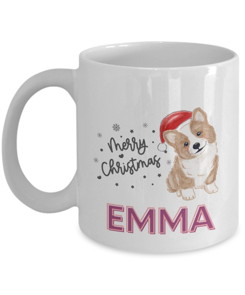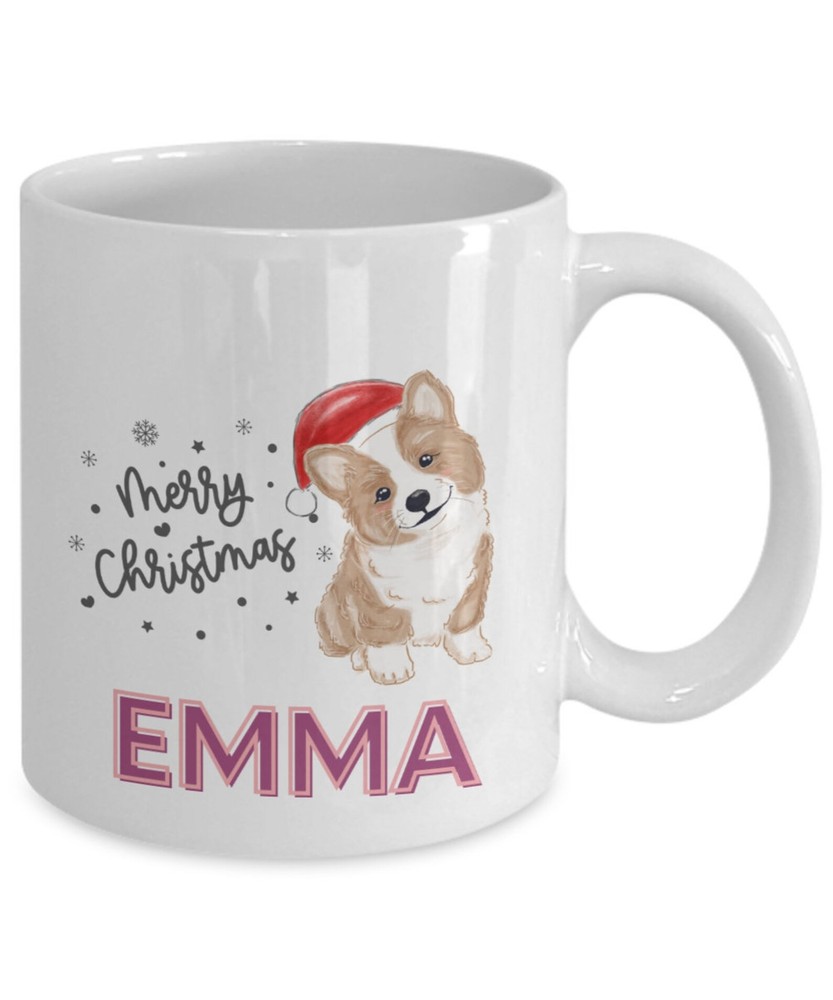 Custom Name Christmas Mug Santa Corgi Christmas Dog Dog Lover Gift Personalized Mug Christmas Gift For Him Her Kids Product Details.. This high quality 11oz. ceramic white mug has a premium hard coat that provides crisp and vibrant color reproduction sure to last for years. Perfect for all hot & cold beverages. The highest quality printing possible is used. It will never fade no matter how many times you wash it. Material: 100% Ceramic. Print both sides. Dishwasher and Microwave Safe. High Gloss + Premium White Finish. Printed in the U.S.A. Personalized & Custom. We support personalized and custom mug to add custom, when placing an order, you can add notes to the "order note" in shipping address section. Also you can contact us directly via message. Shipping Info. Ready to ship in 1 to 2 business days, All products are made-to-order and proudly printed in the United States. Shipped by USPS and DHL, You will receive your order in 5-7 days. Replace & Refund. All products are defective during shipping broken, chipped will be replaced free of charge. You are not satisfied with the product, we will refund 100% money to you. If any other issues arise, please do not hesitate to message, we would be more than happy to assist you.