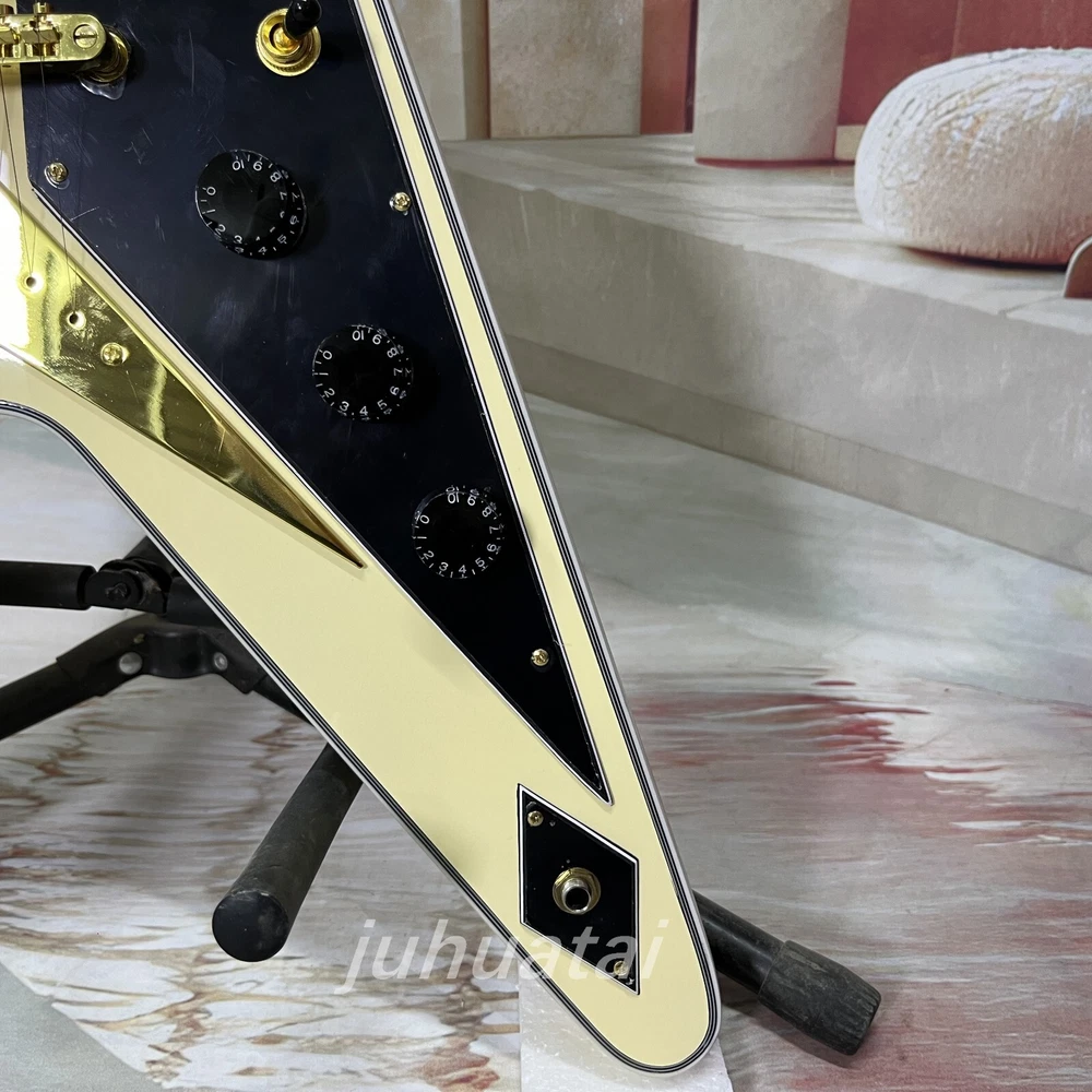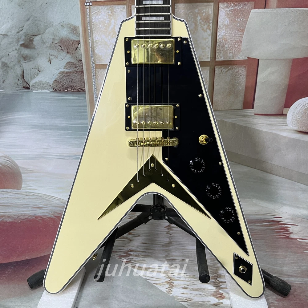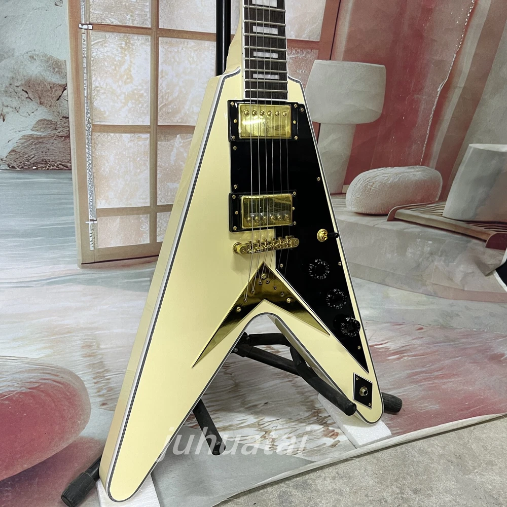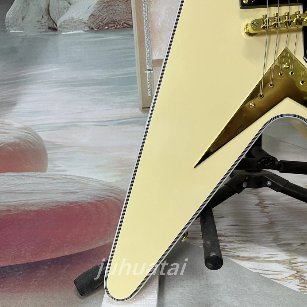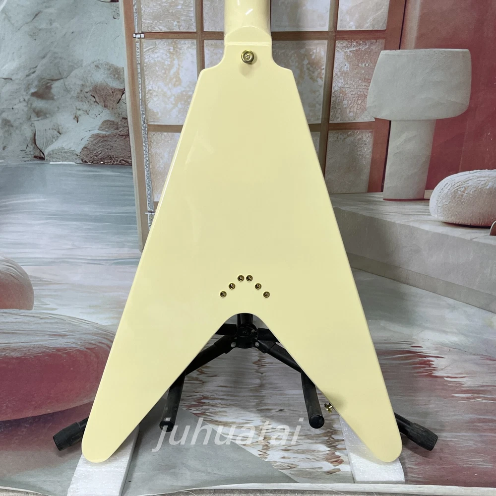 Custom Shop Flying V Cream white Electric Guitar H-H pickup Mahogany body