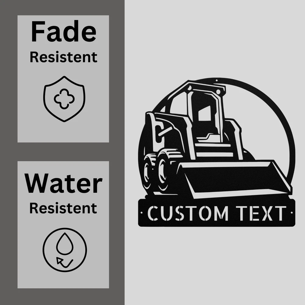Product Description Custom Skid Steer Metal Sign Personalized Heavy Equipment Decor Indoor Outdoor Celebrate your love for heavy equipment with this Custom Skid Steer Metal Sign , designed to bring a rugged and personalized touch to any space. Made from 16 gauge high-quality metal, this sign is perfect for indoor or outdoor use, thanks to its durable powder coating that makes it dust, weather, and water resistant. Whether you’re looking for a unique gift for a construction enthusiast or want to add a bold statement piece to your home, garage, or workshop, this sign has you covered. Personalize your Custom Skid Steer Metal Sign with a name, company logo, or message, making it an excellent gift for any occasion, such as Christmas, birthdays, or housewarming celebrations. It’s a meaningful addition to any space where heavy equipment or construction is appreciated. Key Features: Personalized Design: Add a custom name, business name, or message for a special touch. Premium 16 Gauge Metal: Built tough to last in any environment, indoors or outdoors. Powder Coated Finish: Resistant to dust, weather, and water, ensuring long-lasting beauty. Ideal for Any Space: Perfect for home, garage, workshop, or outdoor decor. Great Gift Idea: Perfect for construction lovers, heavy equipment operators, or anyone who enjoys a rugged aesthetic. Bring character to your space with the Custom Skid Steer Metal Sign —a unique gift for anyone who enjoys the world of heavy equipment! Service and Color Choice Our metal signs are designed to be personalized just for you, making them the perfect addition to any space! The default color for our signs is Black , but we also offer a variety of beautiful options including Copper, Gold, White, and Silver . After placing your order, simply contact us with your preferred color choice, and we'll ensure your sign is exactly how you envision it. Let’s create something special together!