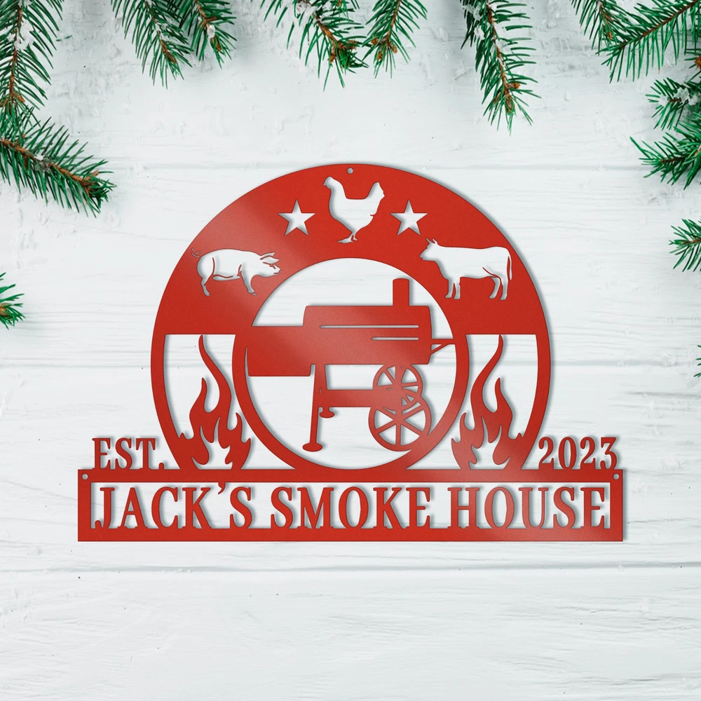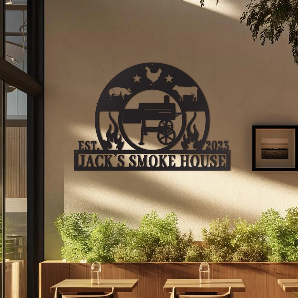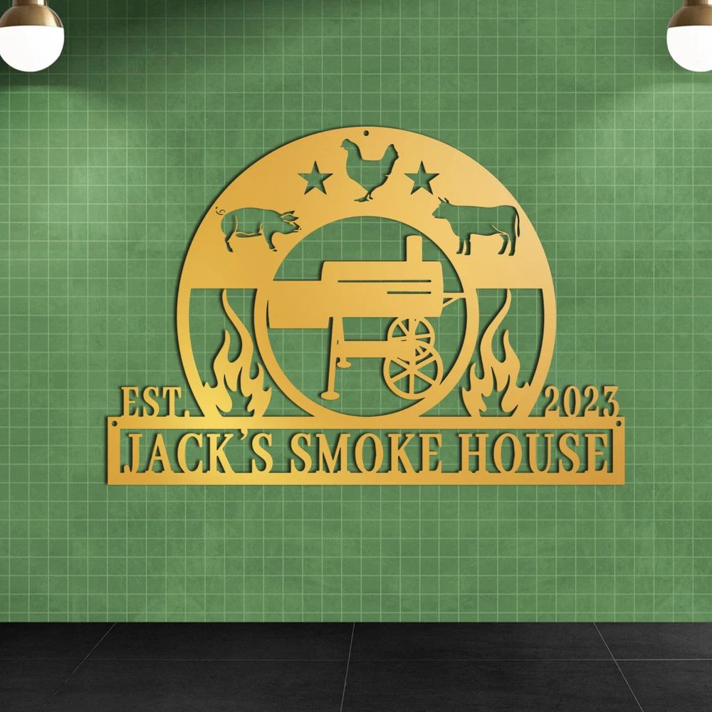 Custom Smokehouse Metal Sign, Metal Backyard Wall Decor, Bar Welcome Sign