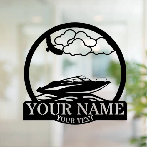 Custom Speed Boat Metal Wall Art, Personalized Speed Boat Name Sign