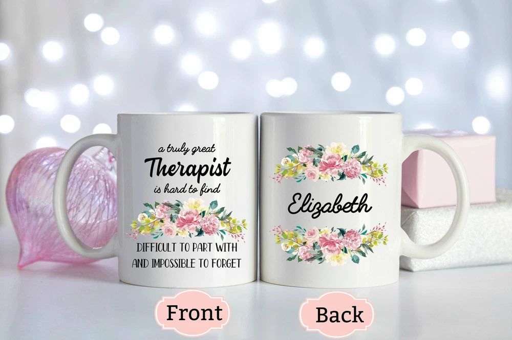 Custom Therapist Gift Gift For Therapist Personalized Therapy Mug Product Details.. This high quality 11oz. ceramic white mug has a premium hard coat that provides crisp and vibrant color reproduction sure to last for years. Perfect for all hot & cold beverages. The highest quality printing possible is used. It will never fade no matter how many times you wash it. Material: 100% Ceramic. Print both sides. Dishwasher and Microwave Safe. High Gloss + Premium White Finish. Printed in the U.S.A. Personalized & Custom. We support personalized and custom mug to add custom, when placing an order, you can add notes to the "order note" in shipping address section. Also you can contact us directly via message. Shipping Info. Ready to ship in 1 to 2 business days, All products are made-to-order and proudly printed in the United States. Shipped by USPS and DHL, You will receive your order in 5-7 days. Replace & Refund. All products are defective during shipping broken, chipped will be replaced free of charge. You are not satisfied with the product, we will refund 100% money to you. If any other issues arise, please do not hesitate to message, we would be more than happy to assist you.