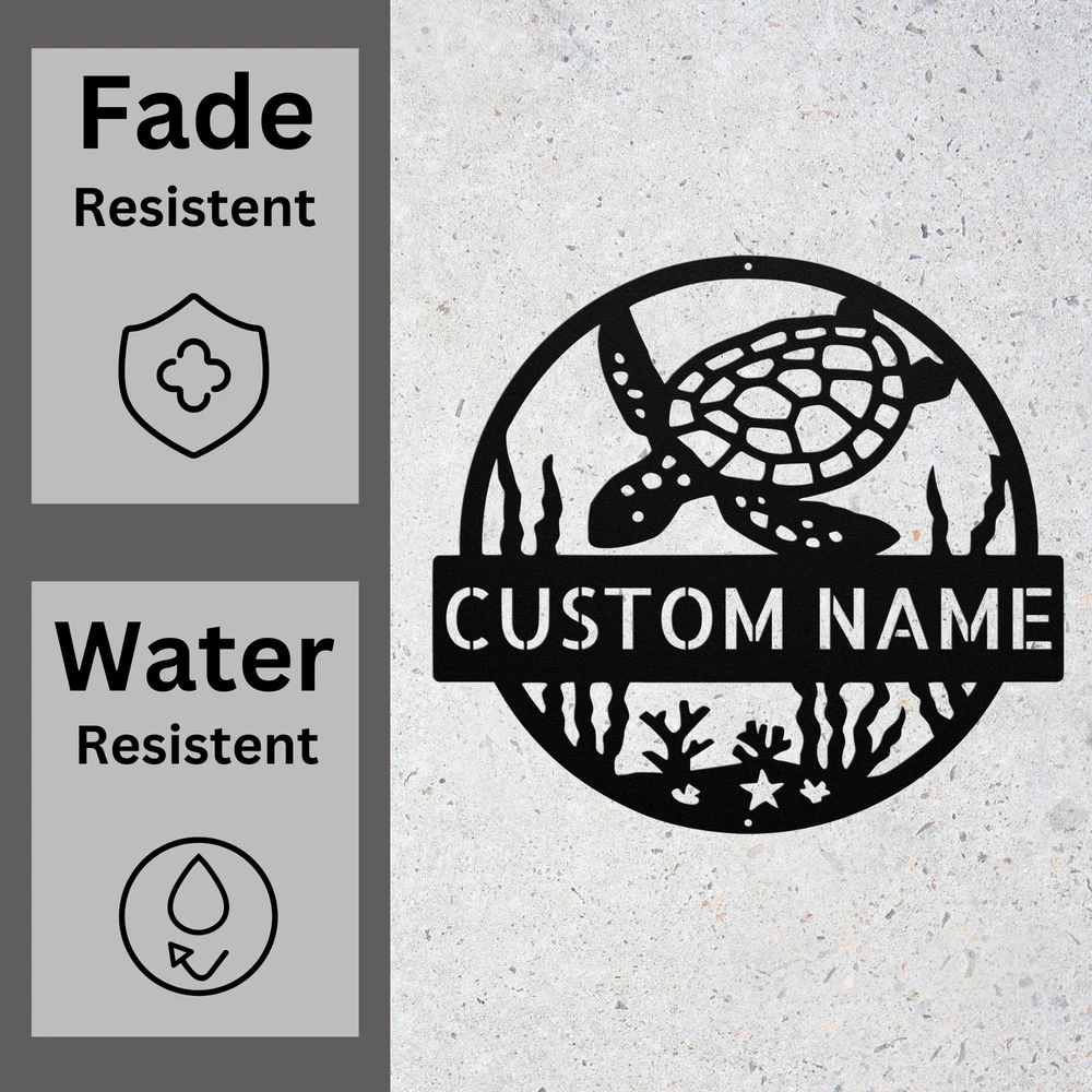 Product Description Custom Turtle Metal Sign Personalized Sea Ocean Beach House Decor Plaque Gift Bring the beauty of the ocean into your space with this Custom Turtle Metal Sign ! Featuring an intricate sea turtle design , this personalized metal plaque is perfect for beach houses, coastal cottages, tropical retreats, and ocean lovers . Whether you’re decorating a living room, patio, dock, or seaside getaway , this high-quality metal sign adds a serene and elegant coastal touch to any space. 🏝️ Key Features: ✔ Customizable with Names, Coordinates, or Special Message – Personalize it to make it truly yours! ✔ Premium-Quality Metal – Crafted from durable, weather-resistant aluminum for long-lasting beauty. ✔ Beautiful Sea Turtle & Ocean Theme – A perfect symbol of tranquility, strength, and ocean vibes . ✔ Fade & Rust-Resistant Finish – Designed for both indoor & outdoor display. ✔ Perfect for Any Beach-Inspired Space – Ideal for beach houses, porches, poolside areas, docks, and marine-themed rooms . 🎁 A Unique & Thoughtful Gift for Ocean & Sea Life Enthusiasts! 🎁 Searching for a personalized gift for a sea turtle lover, beach house owner, or marine life enthusiast ? This custom turtle metal sign makes a heartfelt and unforgettable present for housewarmings, birthdays, weddings, and coastal decor lovers . 📏 Available Sizes: Choose from multiple size options to fit your space—whether you need a small decorative accent or a large statement piece . 🔧 Easy to Hang & Display: Designed with pre-drilled holes for effortless mounting on walls, fences, patios, docks, or beach cabanas . 🏡 Perfect for: Coastal & Nautical-Themed Home Decor Beach Houses, Cottages & Oceanfront Retreats Personalized Turtle & Marine Life Gifts Poolside & Outdoor Seaside Decorations Tropical & Underwater-Themed Kids’ Rooms Service and Color Choice Our metal signs are designed to be personalized just for you, making them the perfect addition to any space! The default color for our signs is Black , but we also offer a variety of beautiful options including Copper, Gold, White, and Silver . After placing your order, simply contact us with your preferred color choice, and we'll ensure your sign is exactly how you envision it. Let’s create something special together!